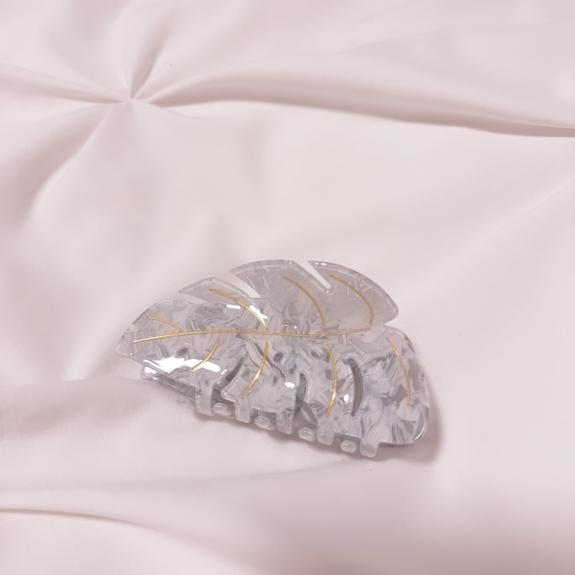 ハワイ モンステラ ホワイト ヘアクリップ 髪留め 髪どめ
