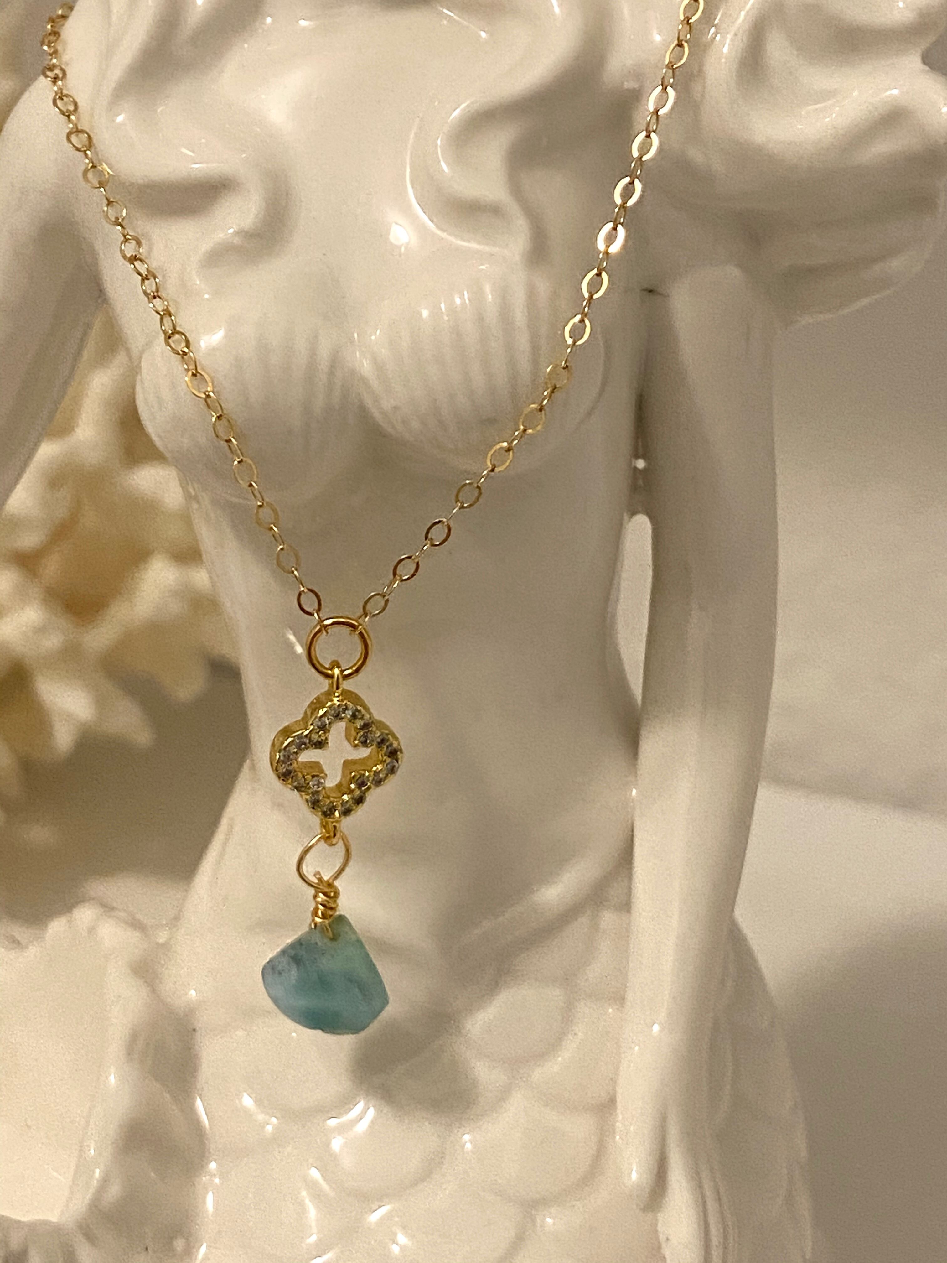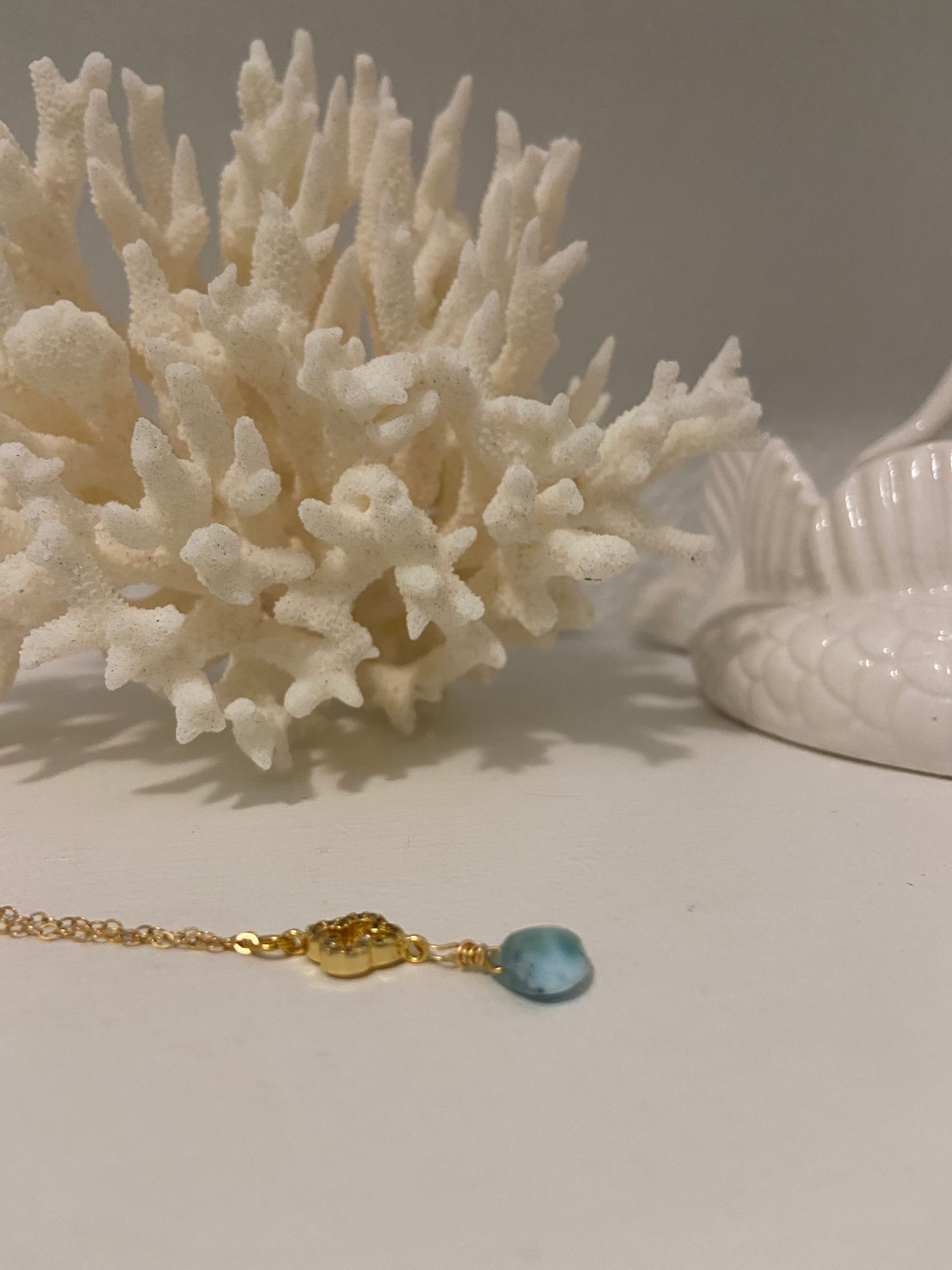 ☆14K Gold Filed ラリマー ハワイ 南国 ゴールド ビーチ ハンドメイド 女性用ネックレス♡ハワイアンジュエリー ハンドメイド ハワイ