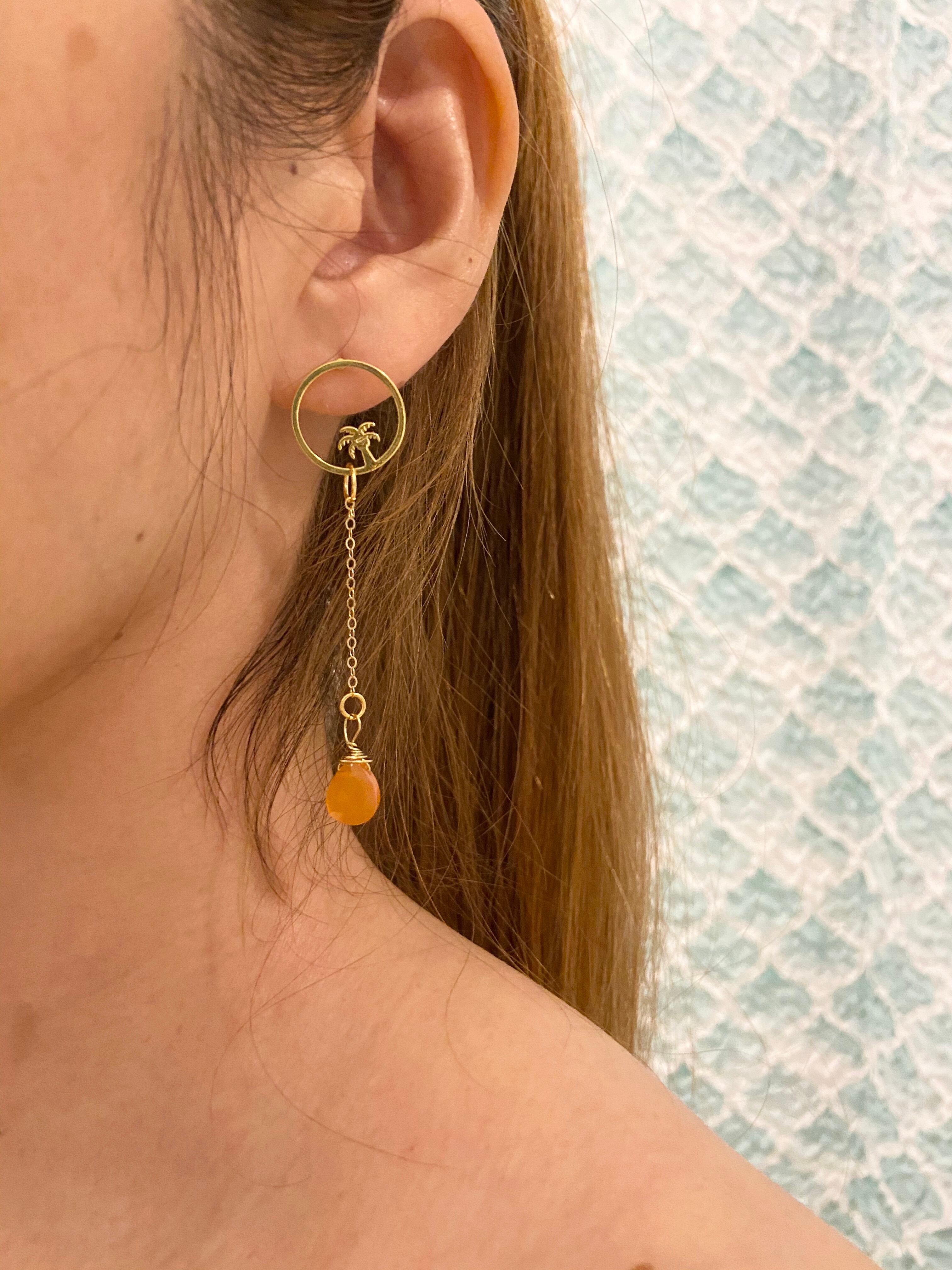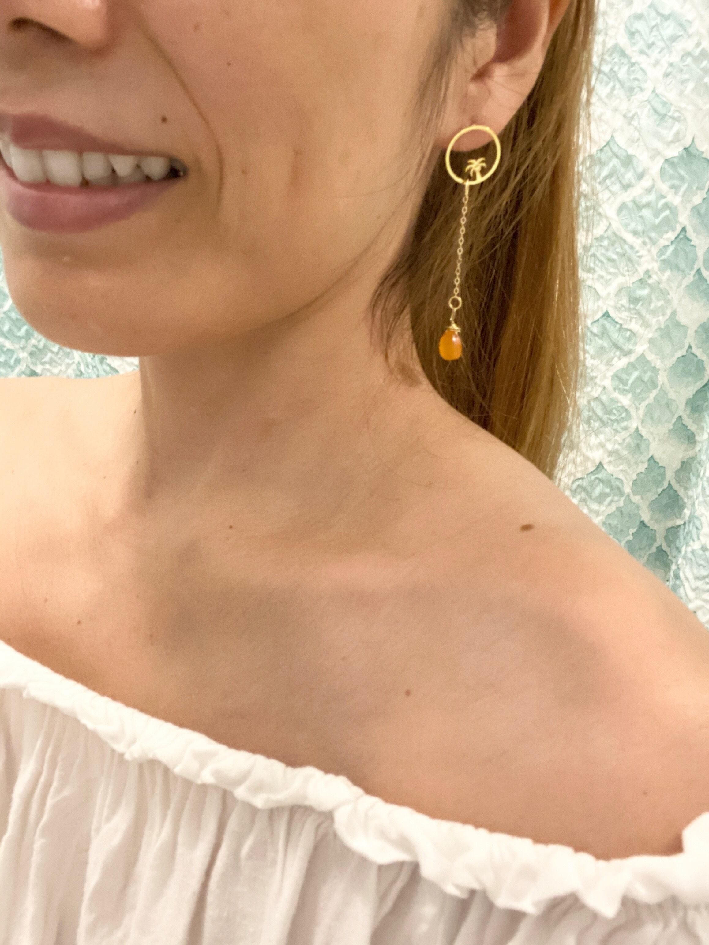 めずらしいパームツリーのフープに耳元でゆらゆらとオレンジカルセドニーが動いてとても可愛いですピアスです!