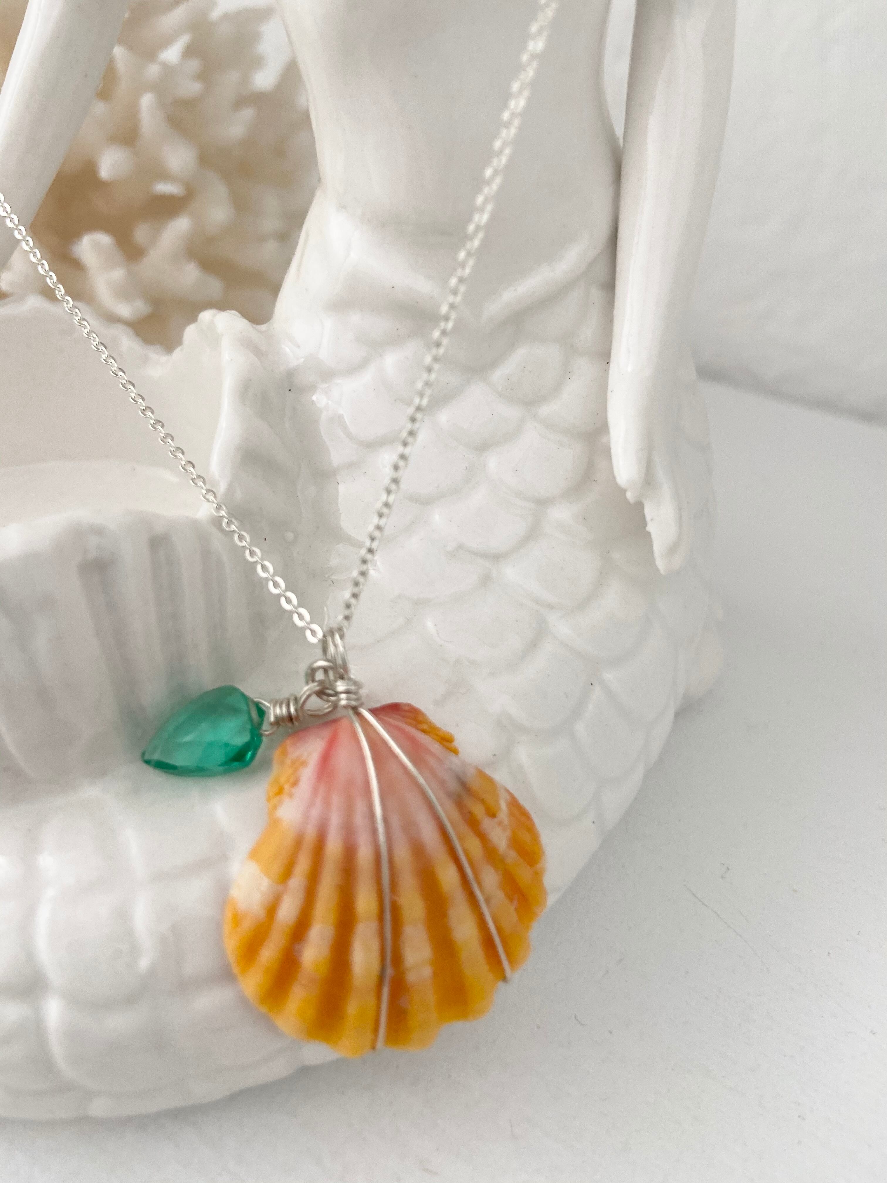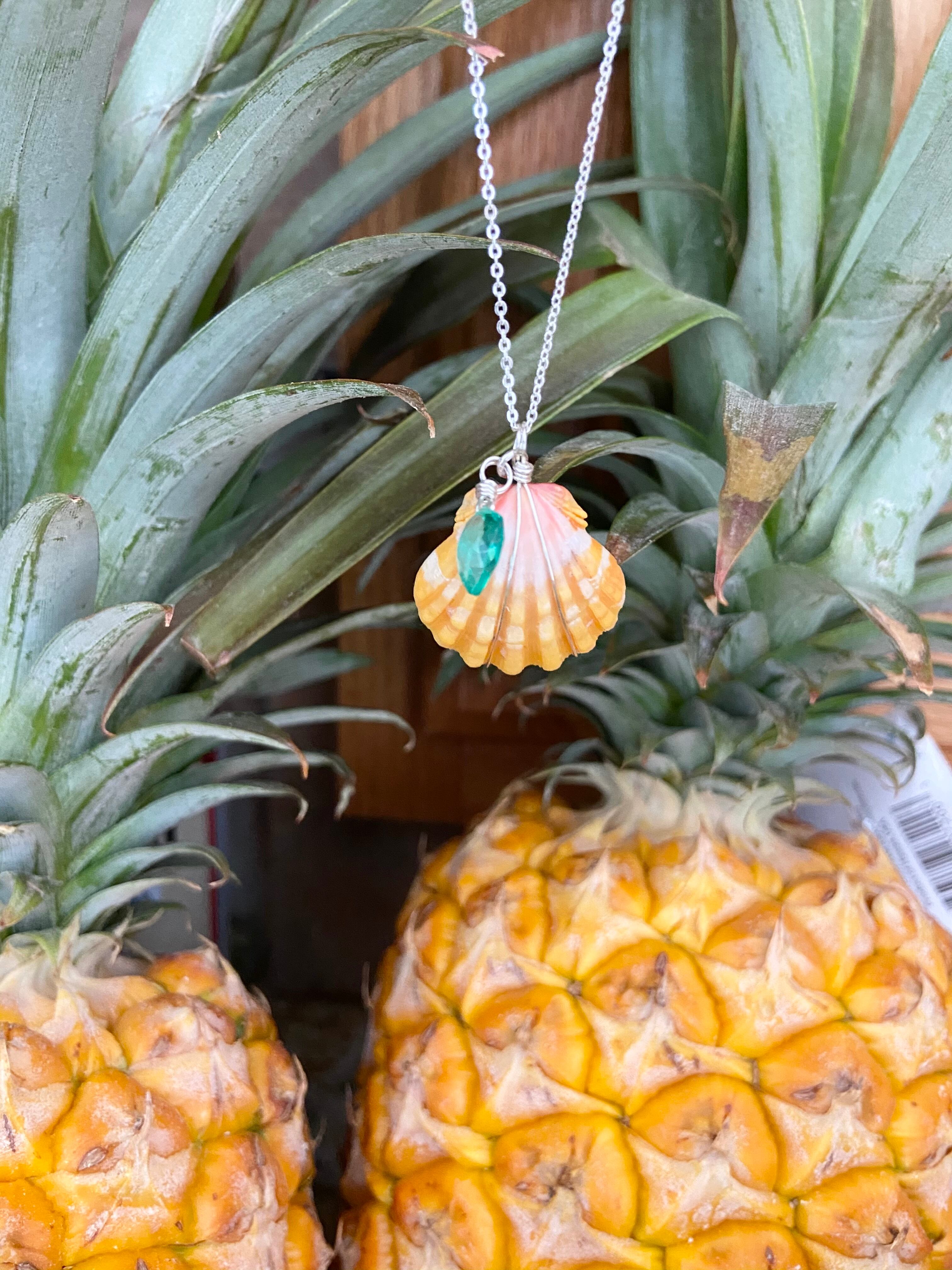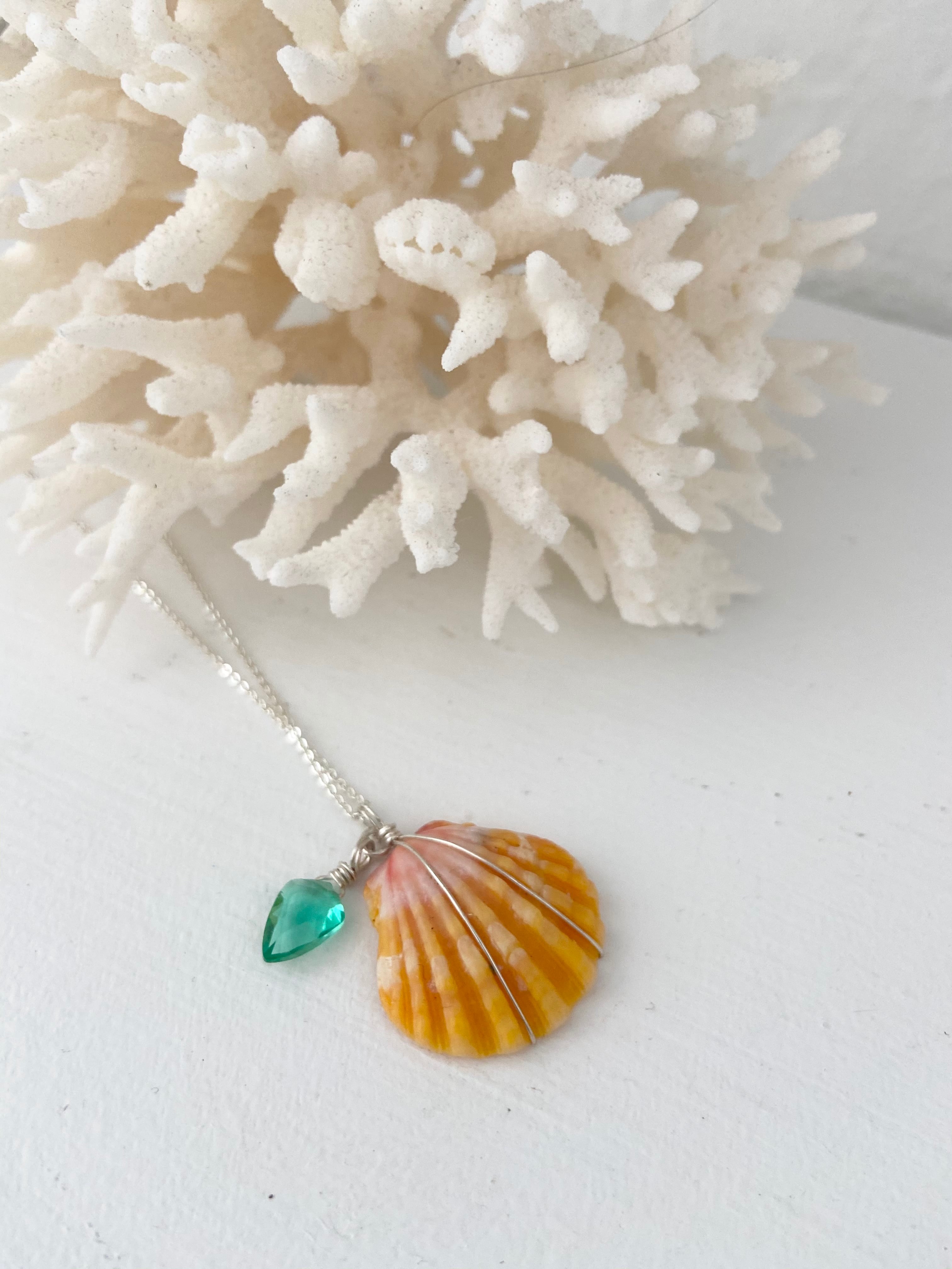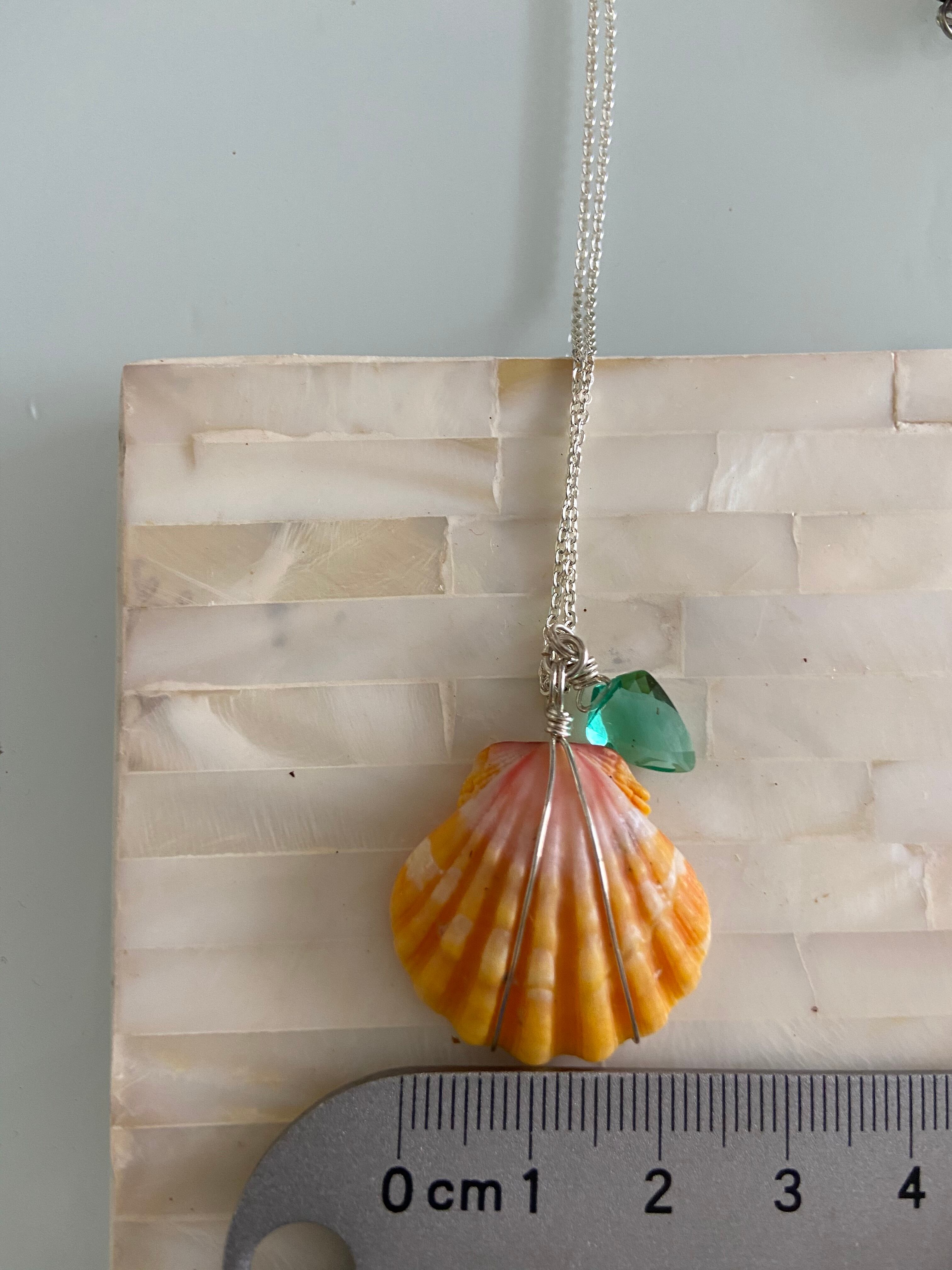 幸せの貝殻と呼ばれるハワイ産の天然サンライズシェルを使った可愛いネックレスです。