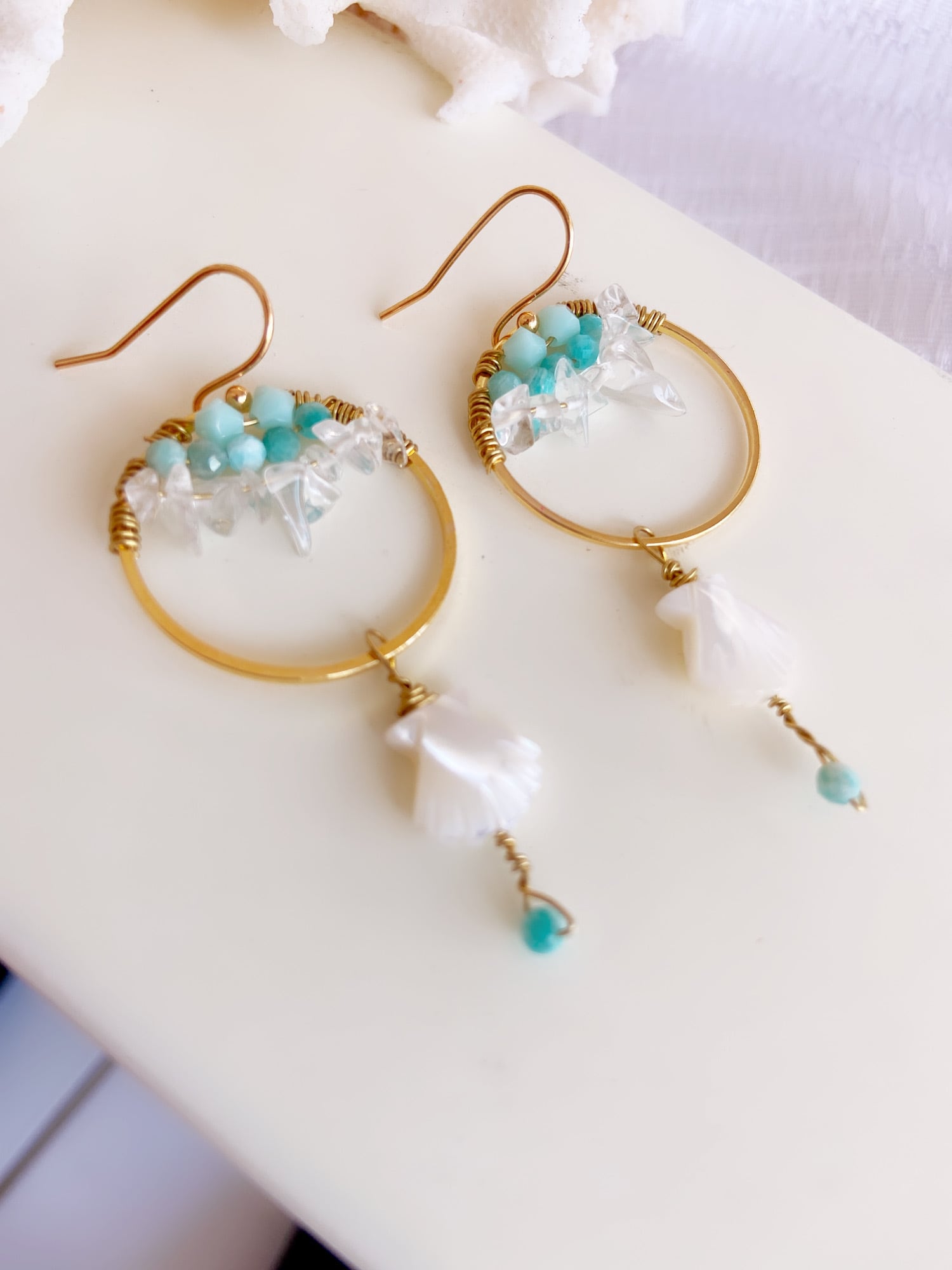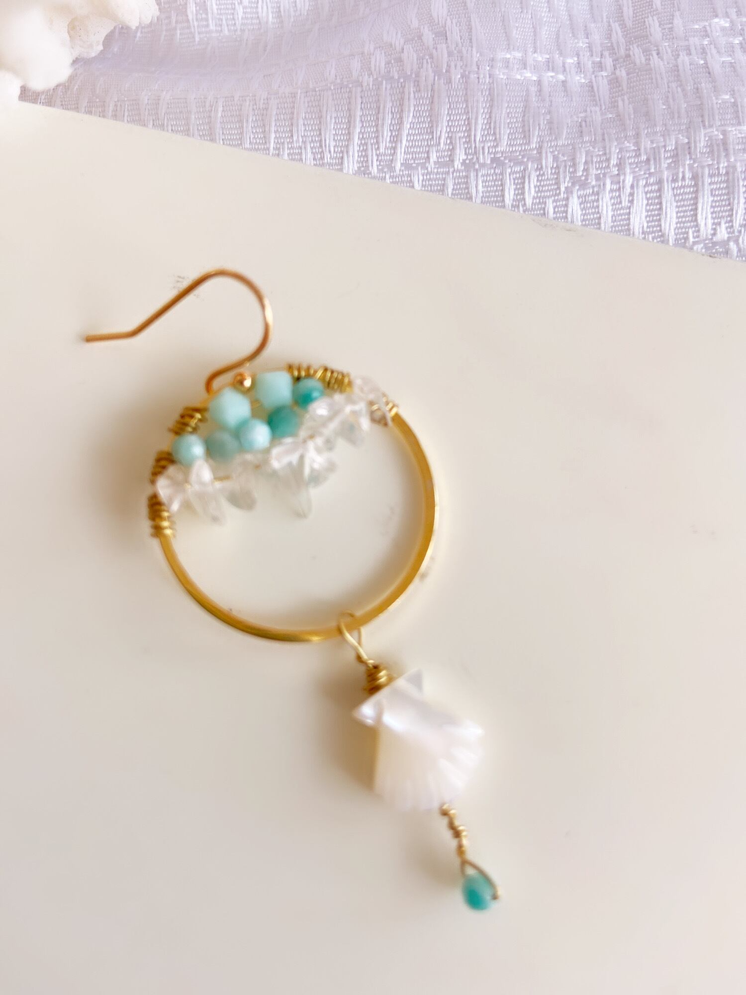 アマゾナイト、クォーツとマザーオブパールシェルを使用しています。