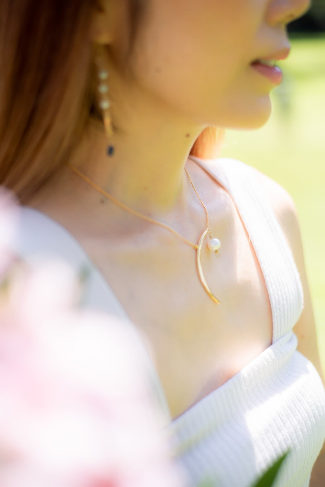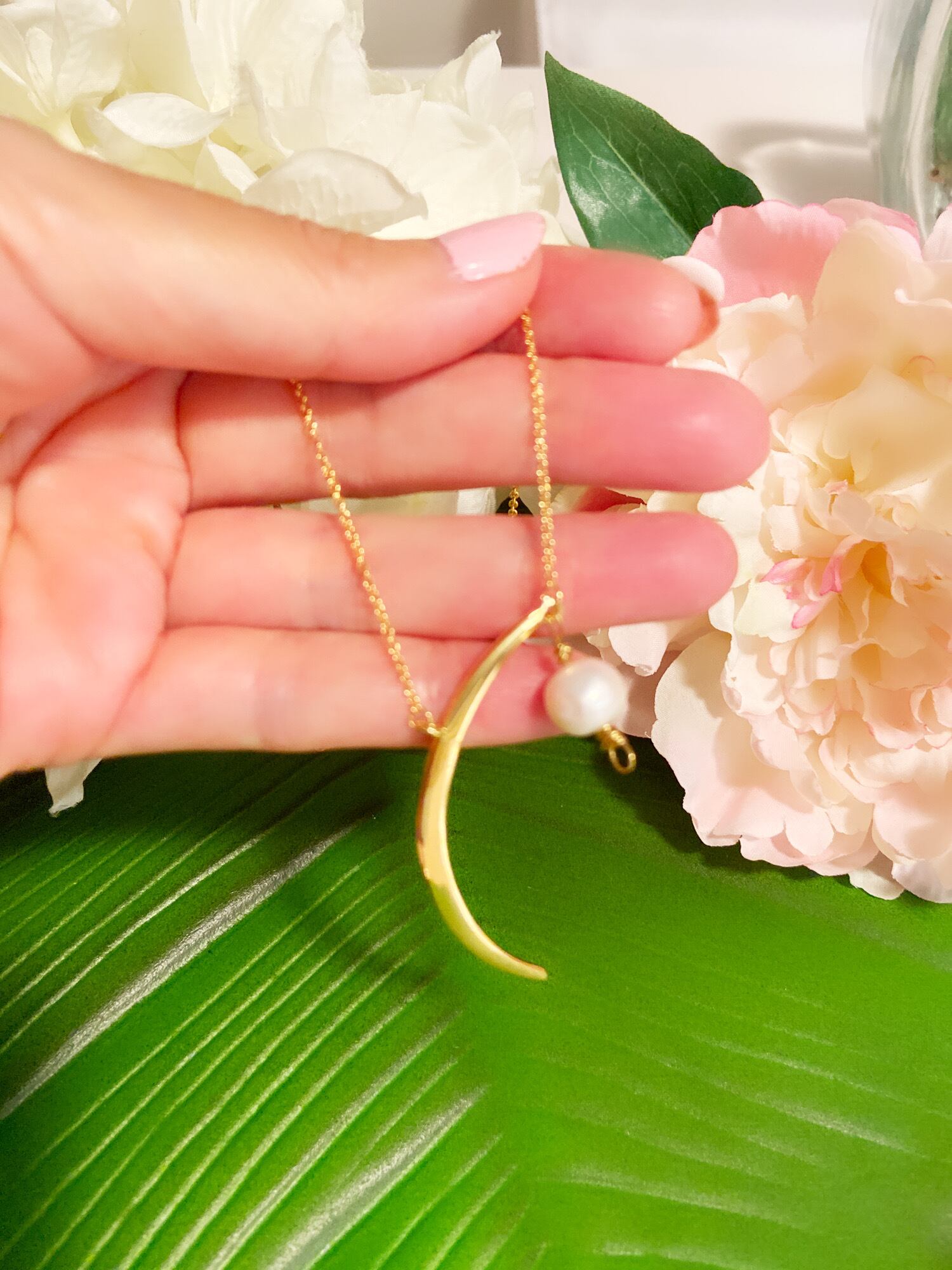 三日月と大粒フレッシュウォーターパールの
