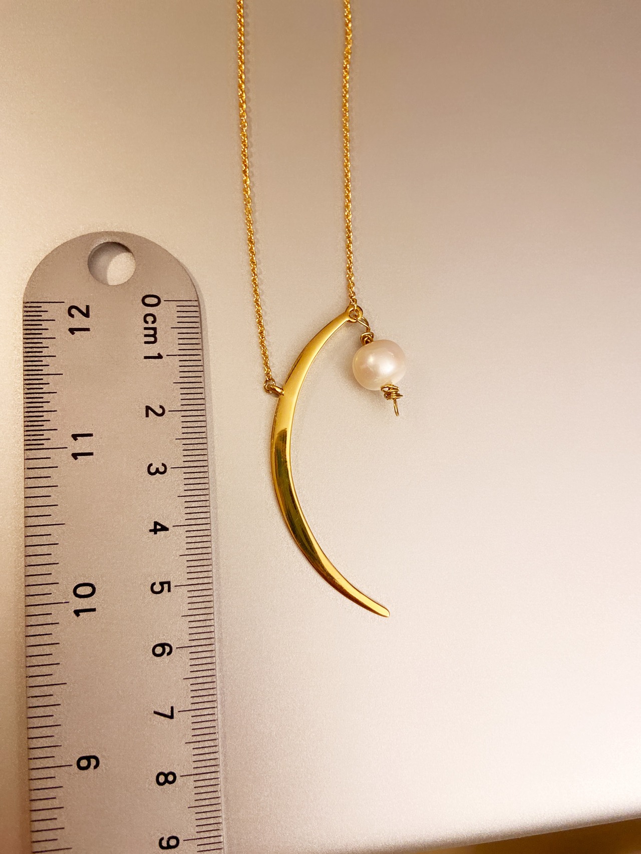 三日月とフレッシュウォーターパール ネックレス ハンドメイド