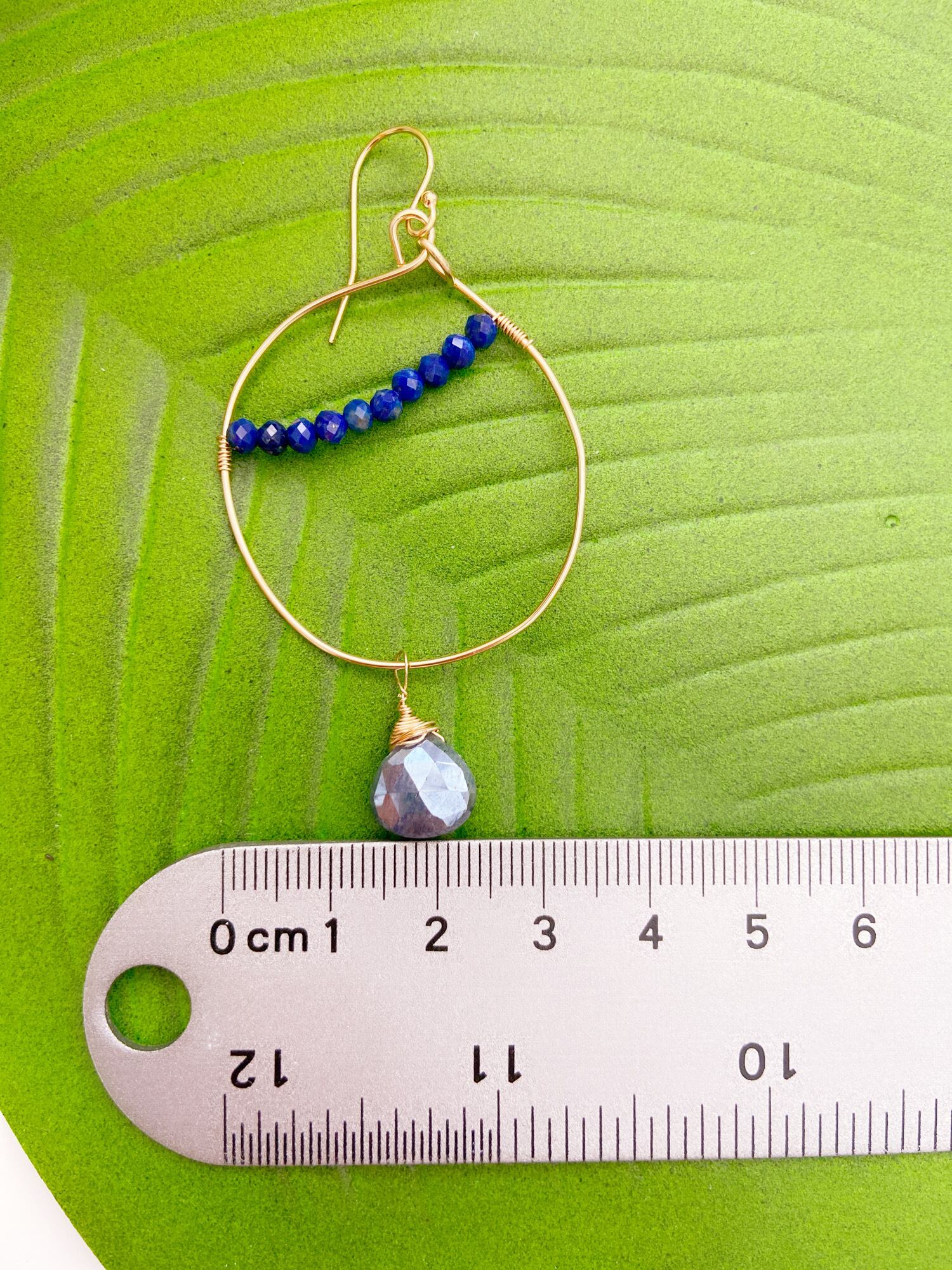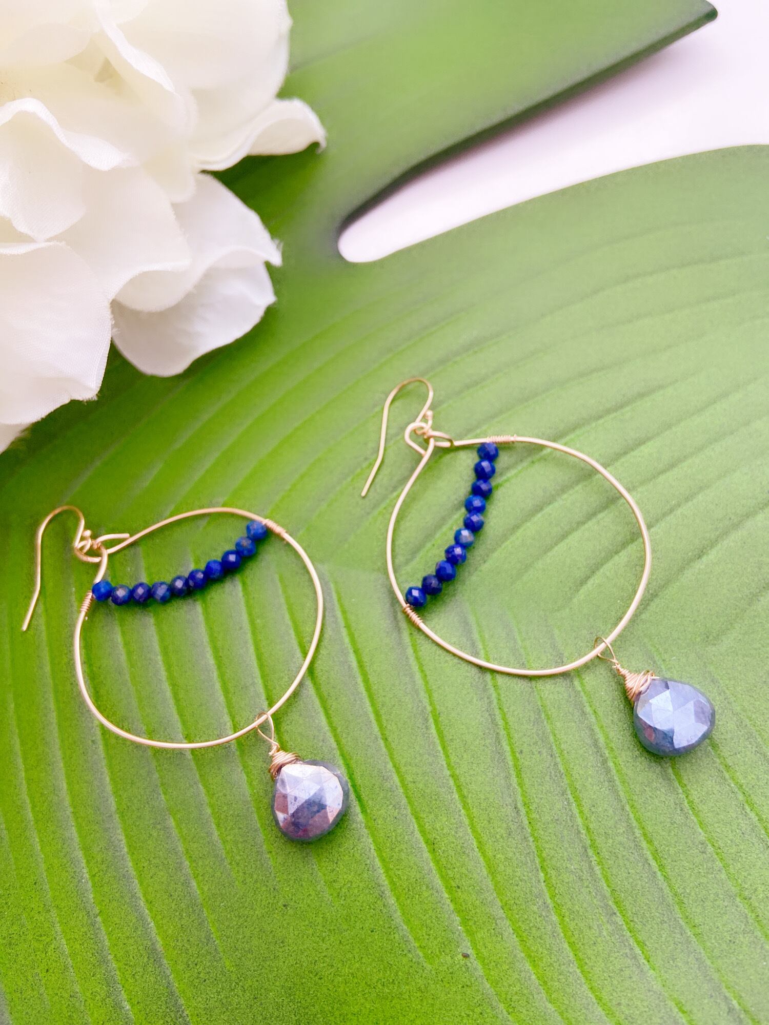 ハワイ ラピスラズリとクォーツ ゴールド パワーストーン ハンドメイド ピアス 天然石