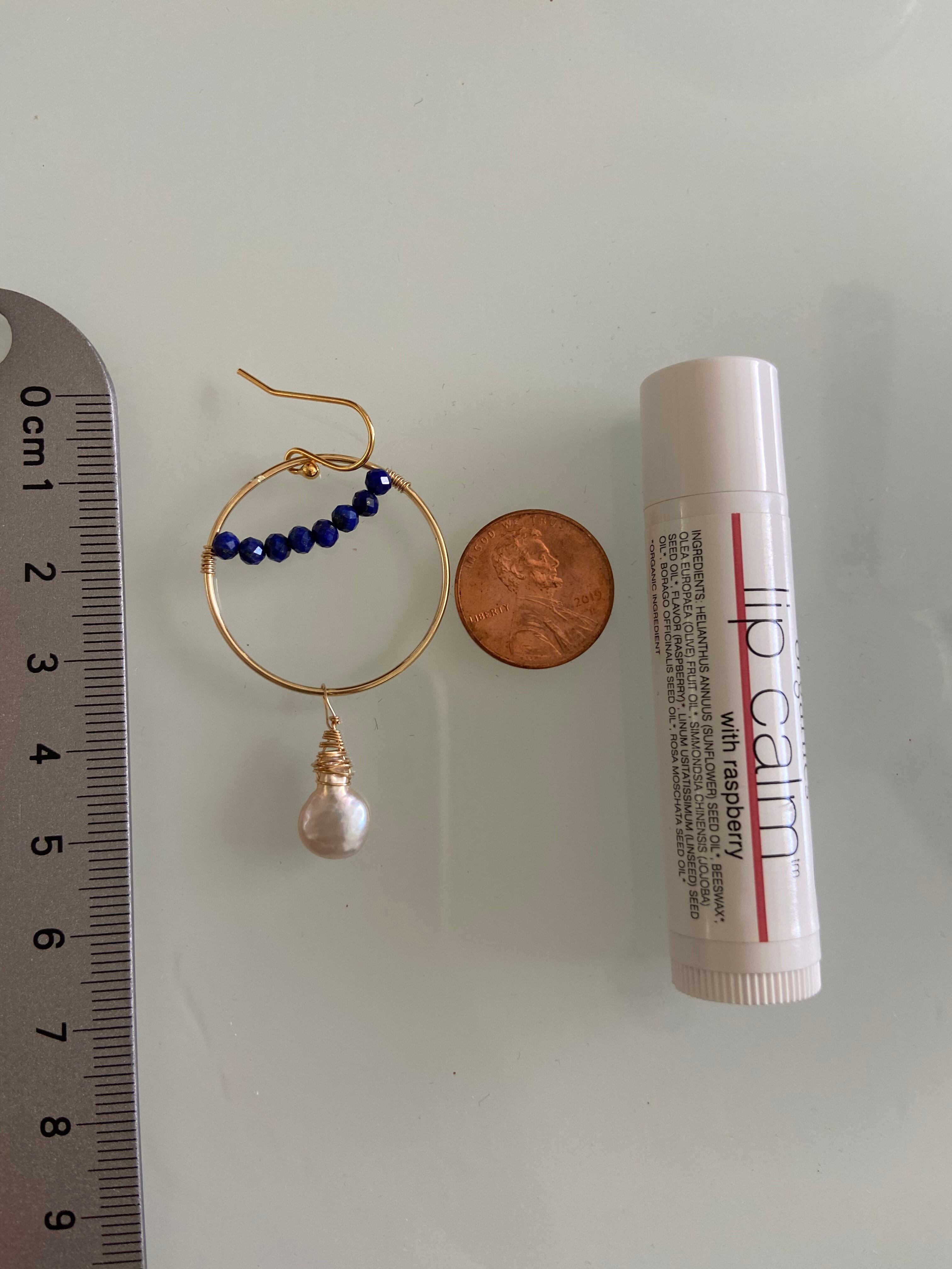 ☆ハワイ 天然石 ラピスラズリ マザーオブパール K14 gold filed ピアス ハンドメイド パワーストーン