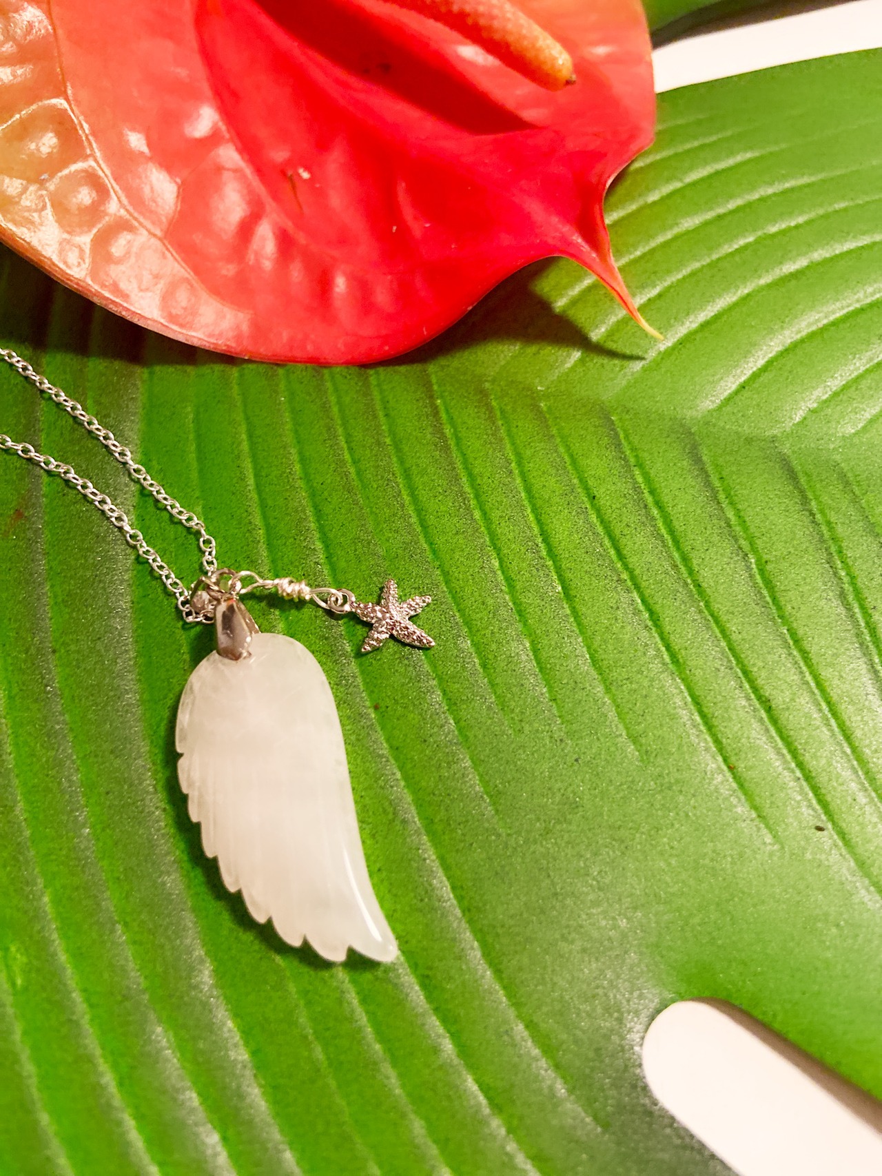 ハワイ エンジェル ローズクォーツ 天然石 パワーストーン シルバー ネックレス ハンドメイド ハワイ直送