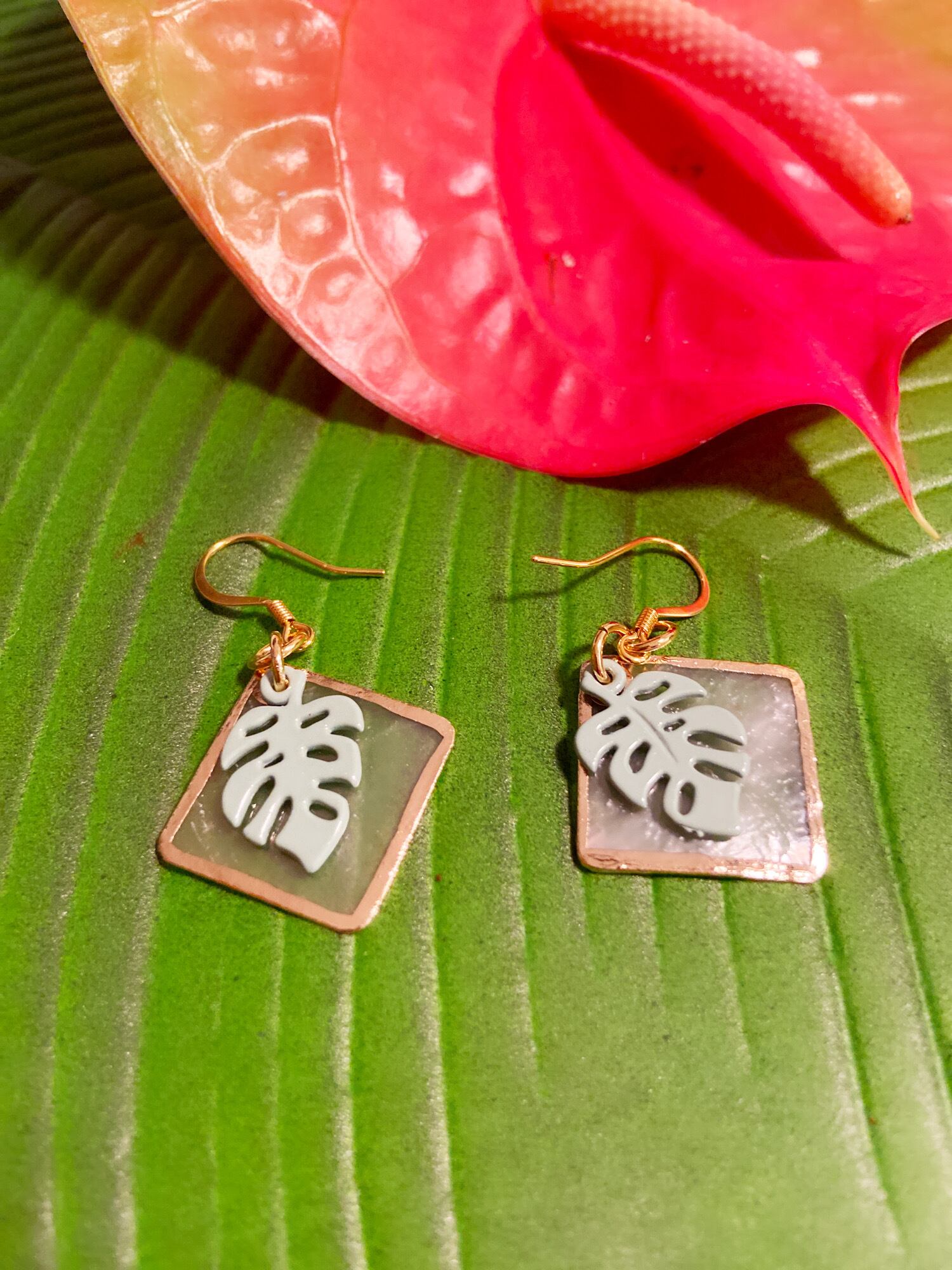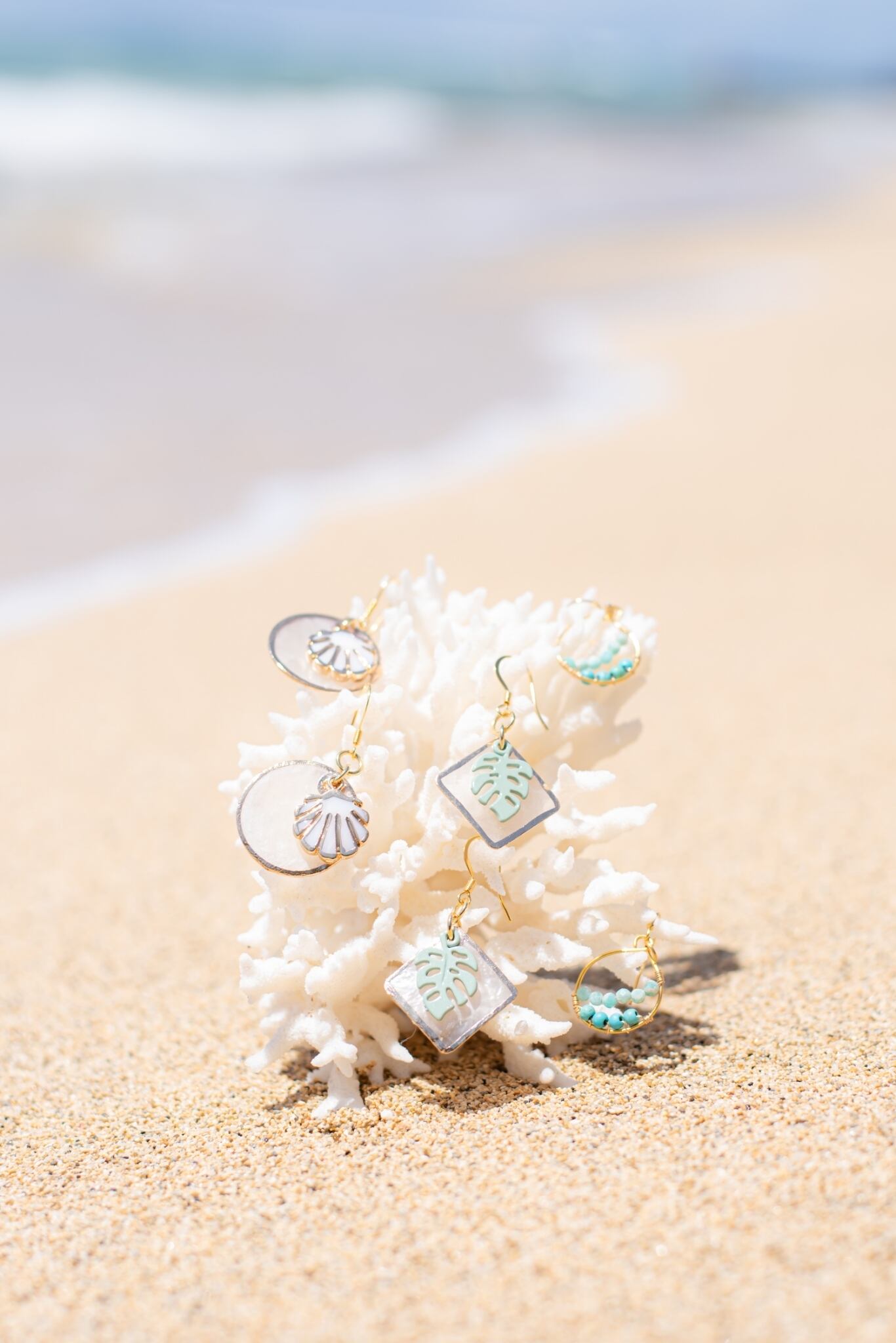 ハワイ シェル ミニ モンテステラ ピアス ハンドメイド ハワイ直送 ビーチ