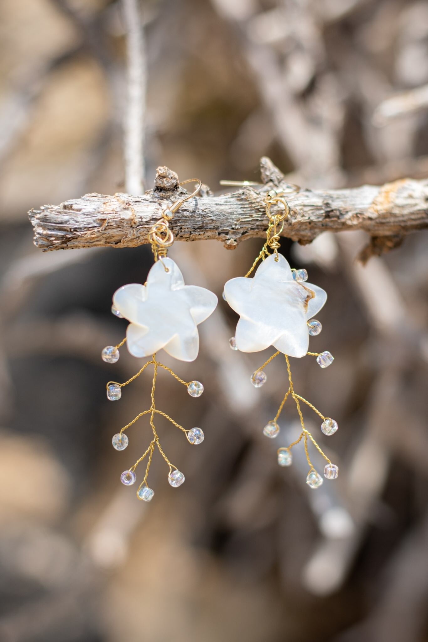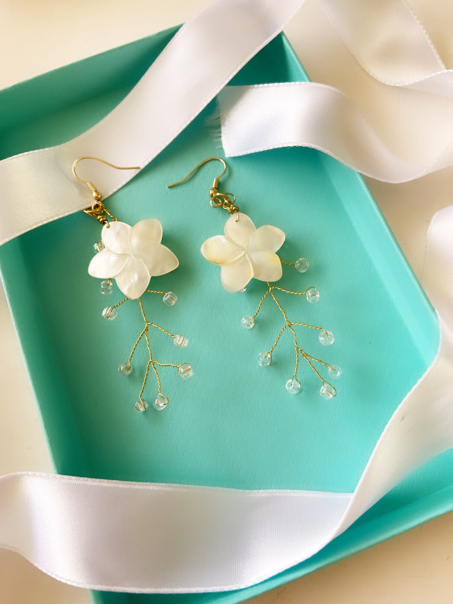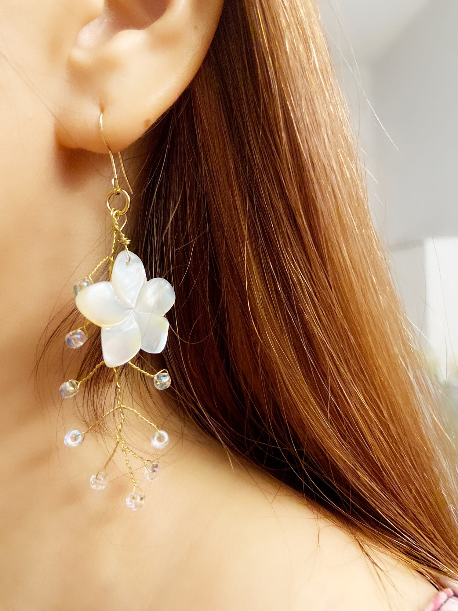 ハワイ♡フラワーシェル シャワーピアス ウェディング ハンドメイド 直送