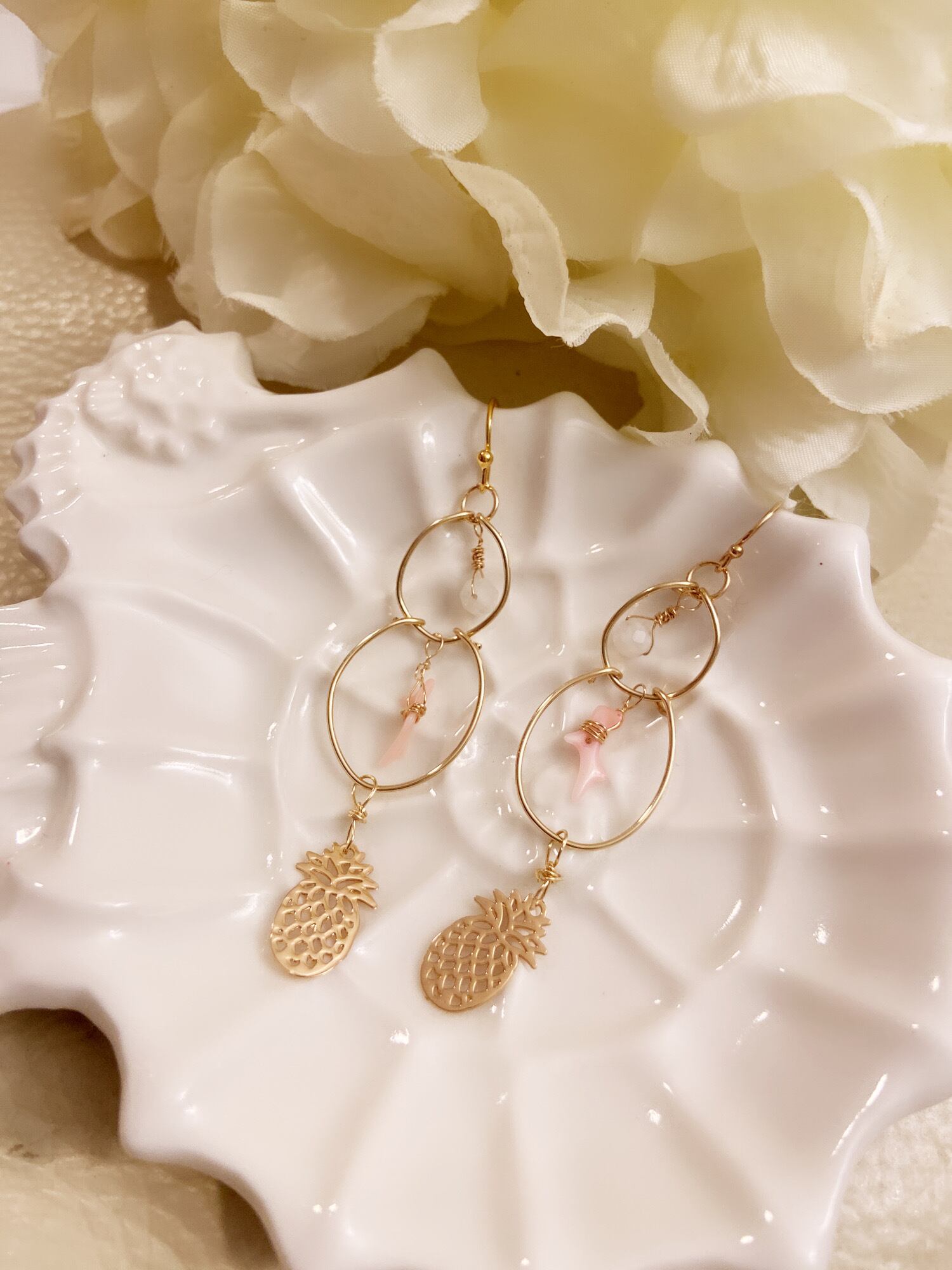 ハワイ♡パイナップルと2連ピアス ハンドメイド ハワイ直送 14kgf