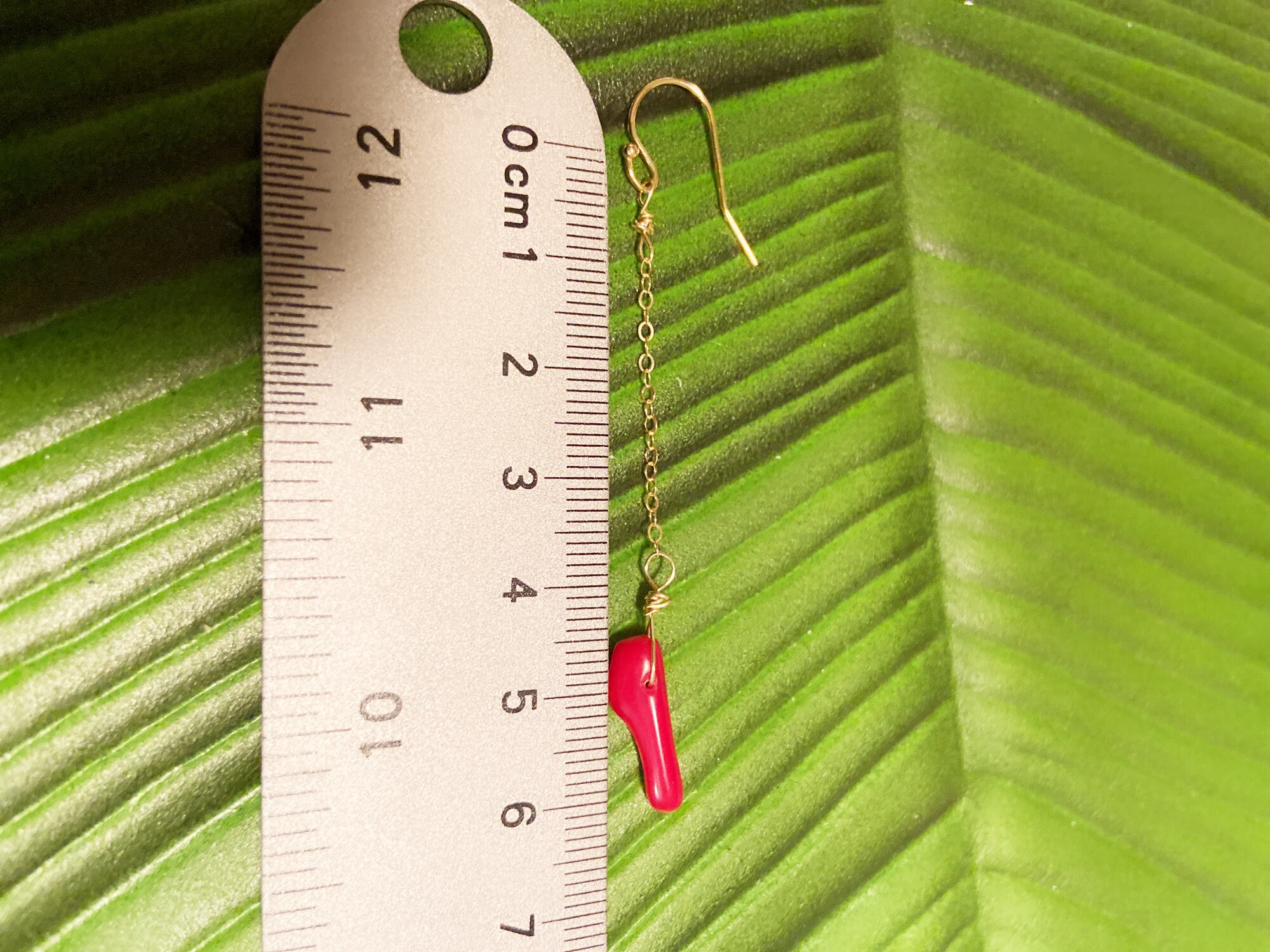 鮮やかなレッドコーラルのシンプルなピアスです。