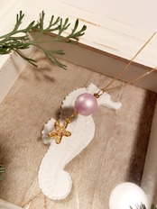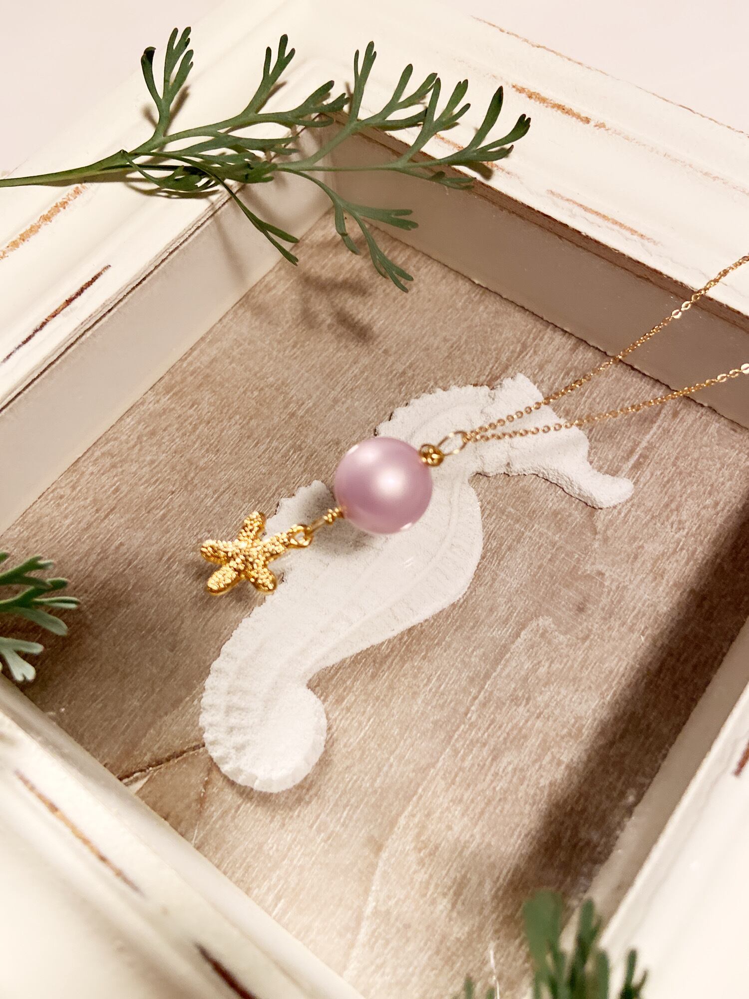 大粒のシェルパールを使った存在感のあるネックレスです。スターフィッシュのチャームがついています。