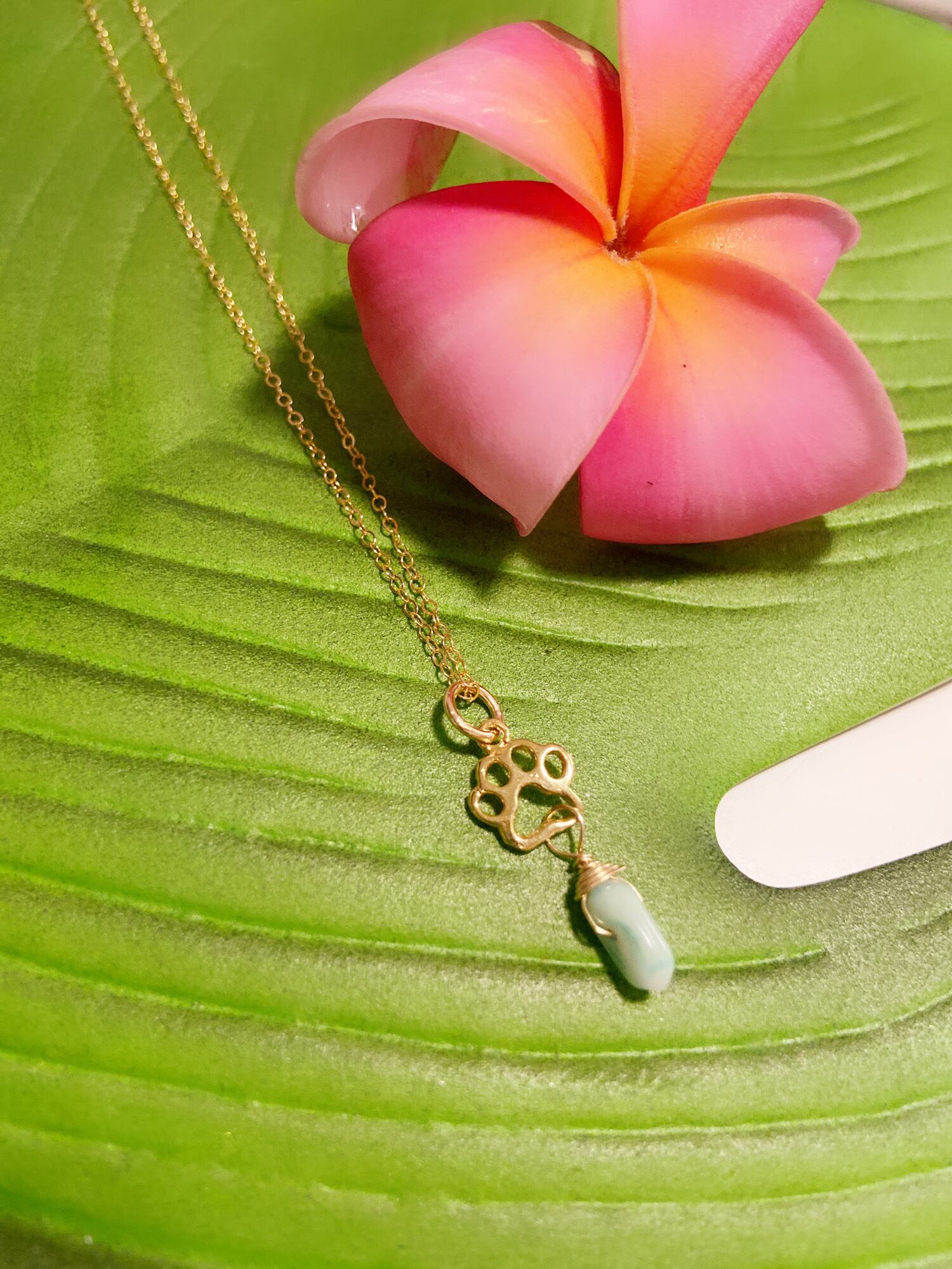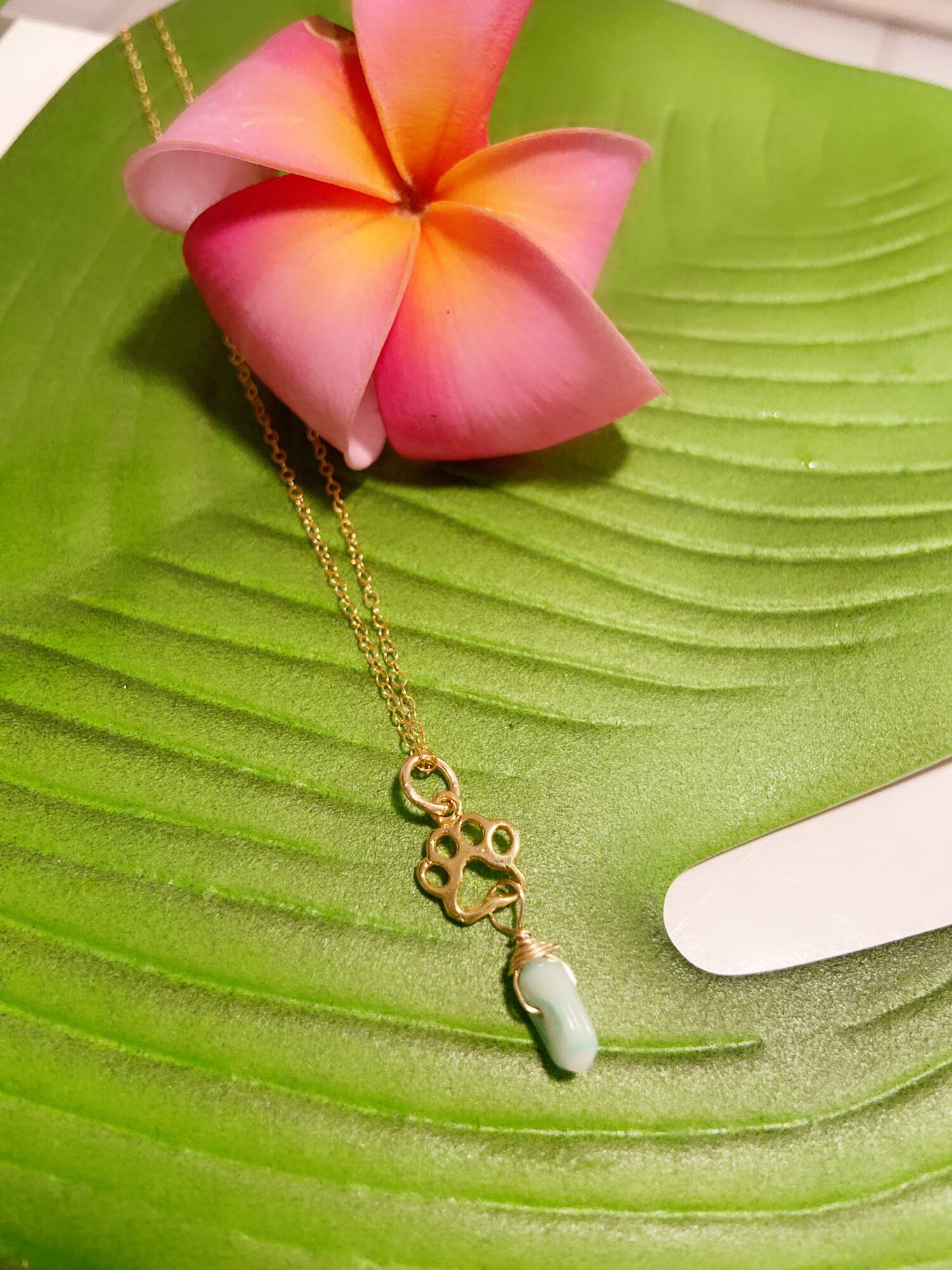 愛犬家さんに人気のドッグパウとラリマーのネックレスです!キュートなドッグパウが可愛いくて