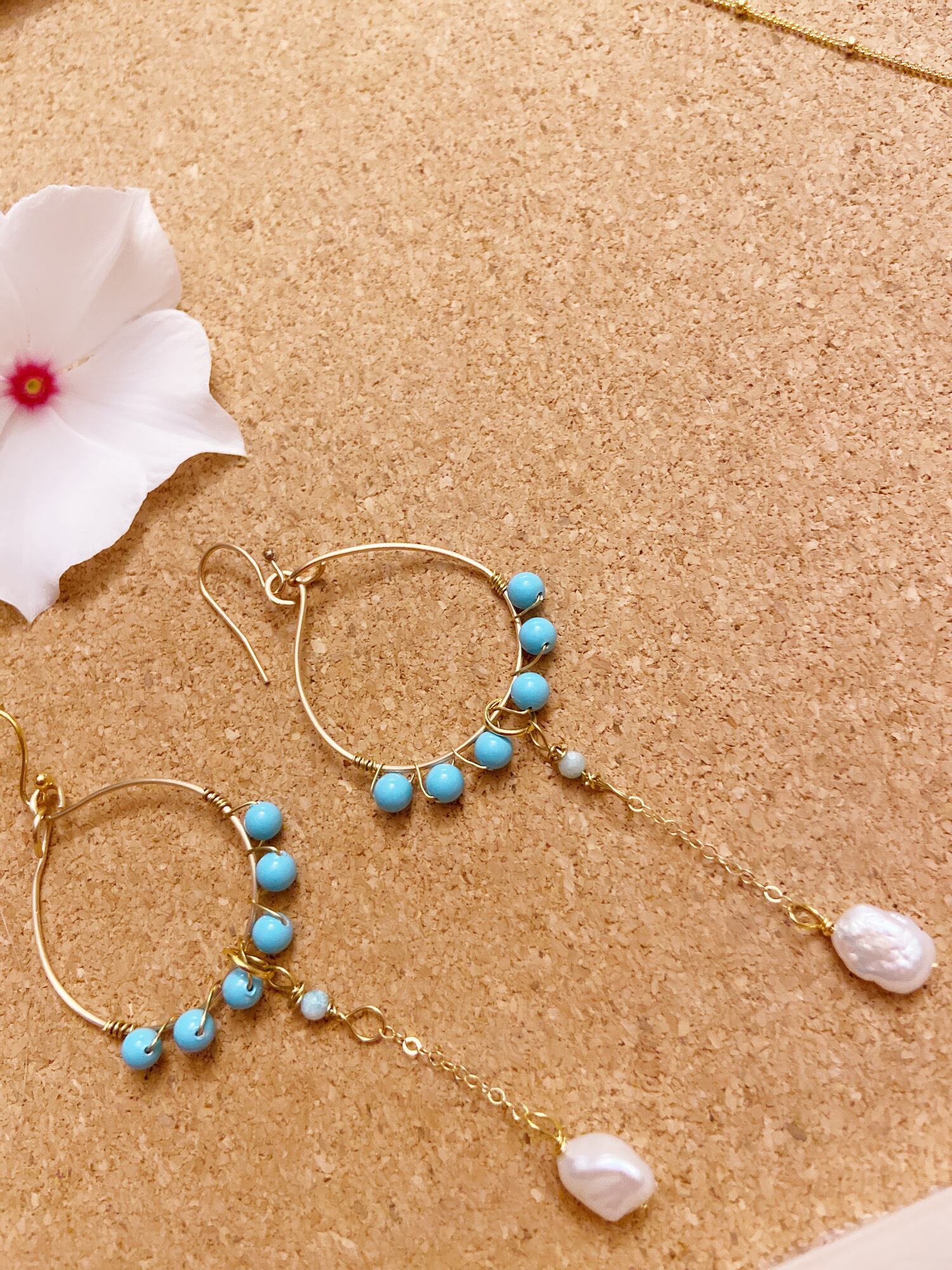 ハウライトダイドとケシパールのフープピアスです。