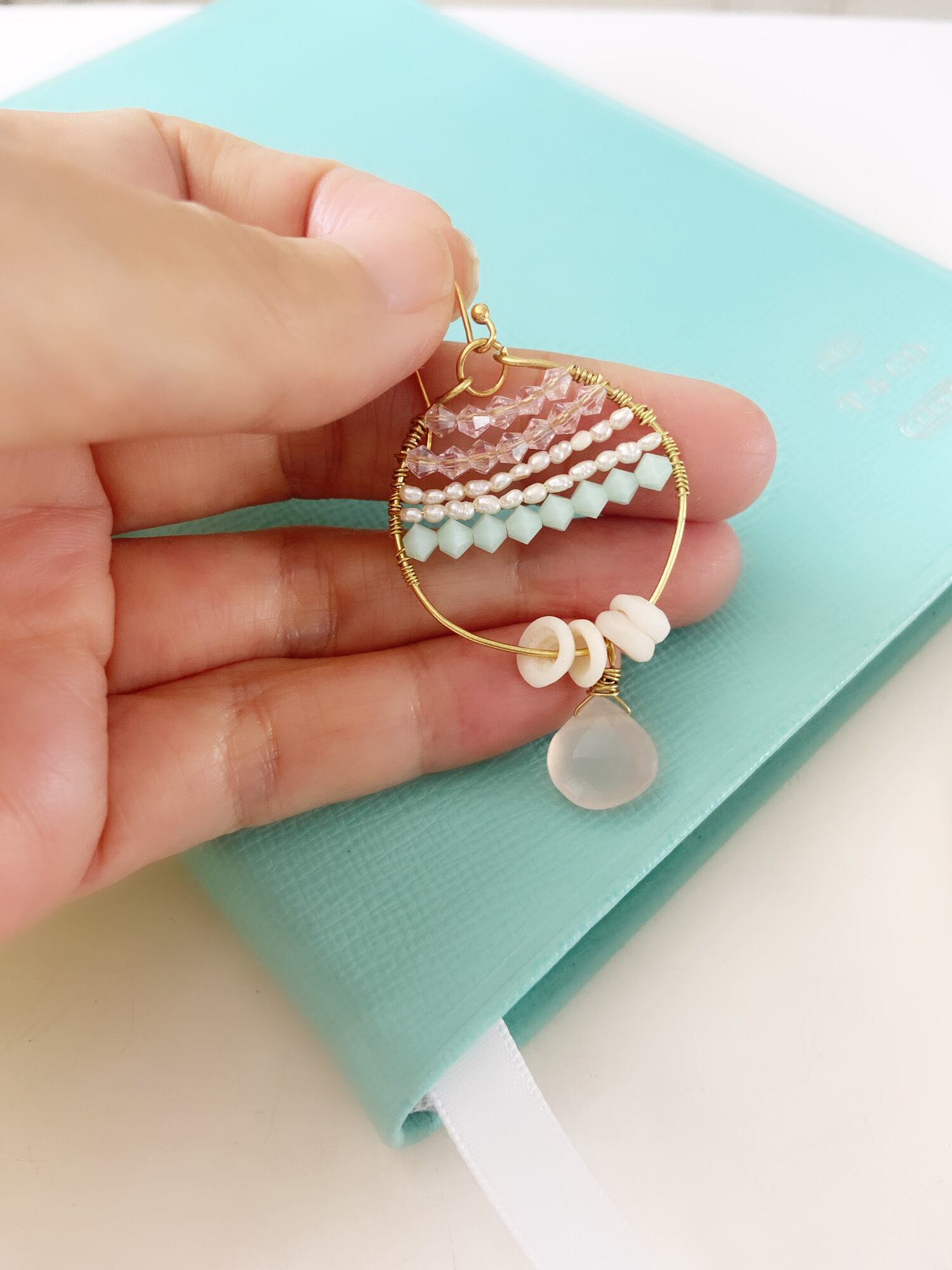 プカシェルとカルセドニー ピアス ハワイ ハンドメイド イヤリング ハワイ限定