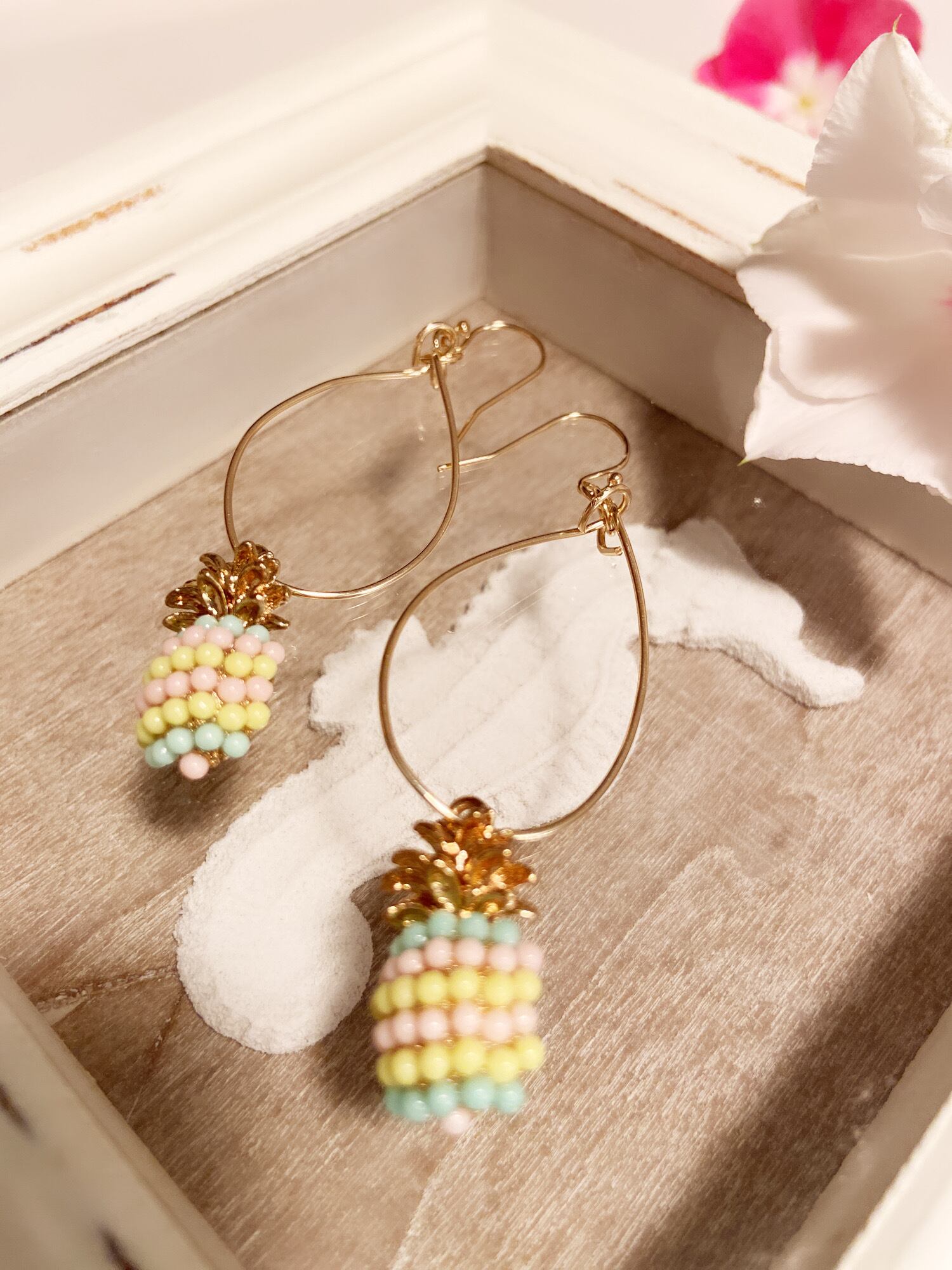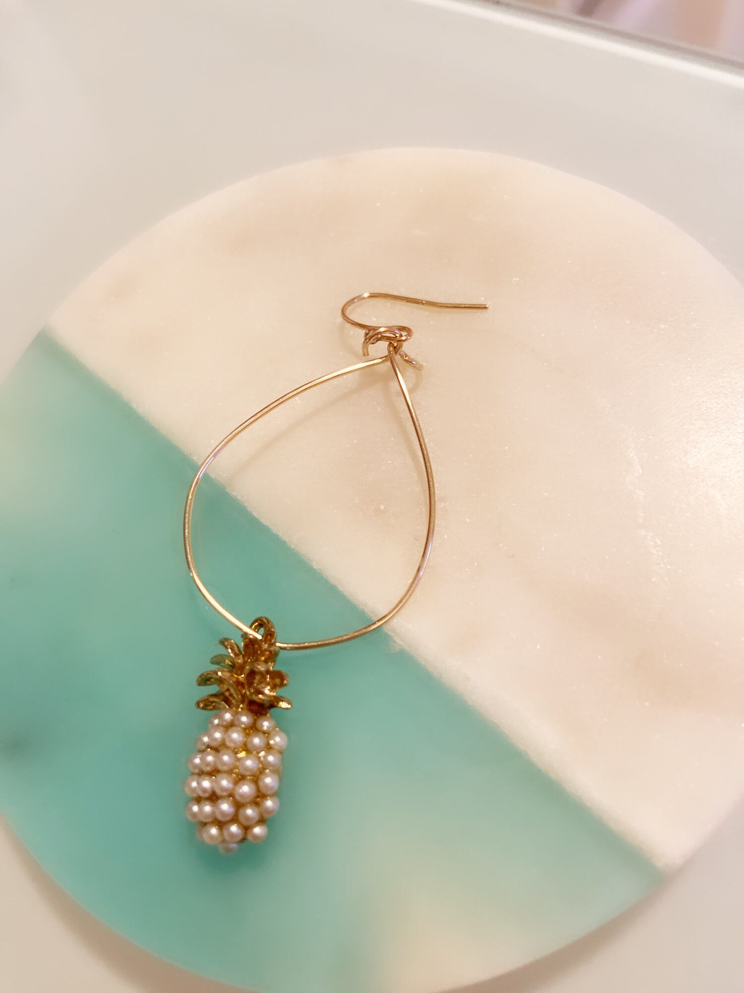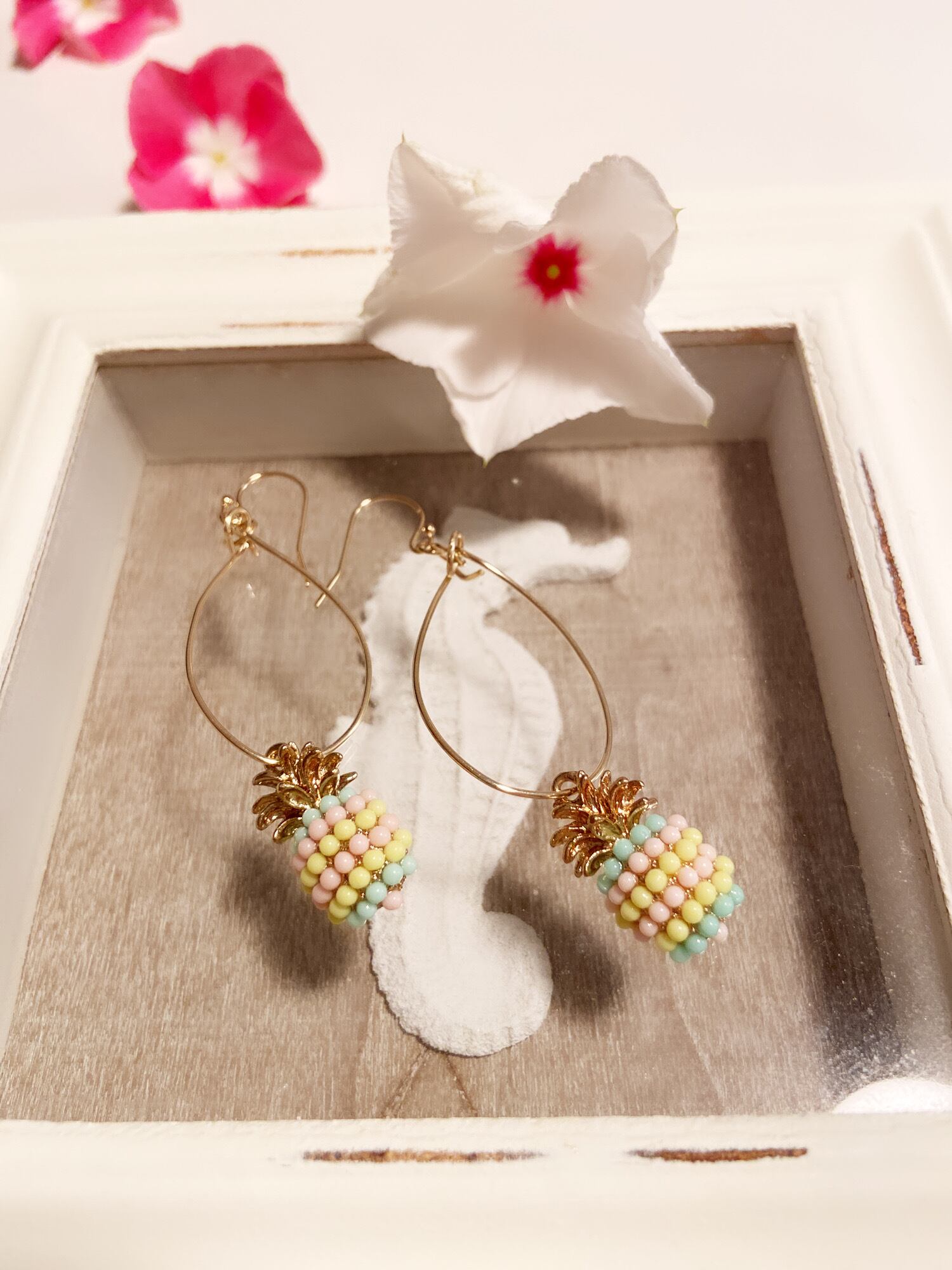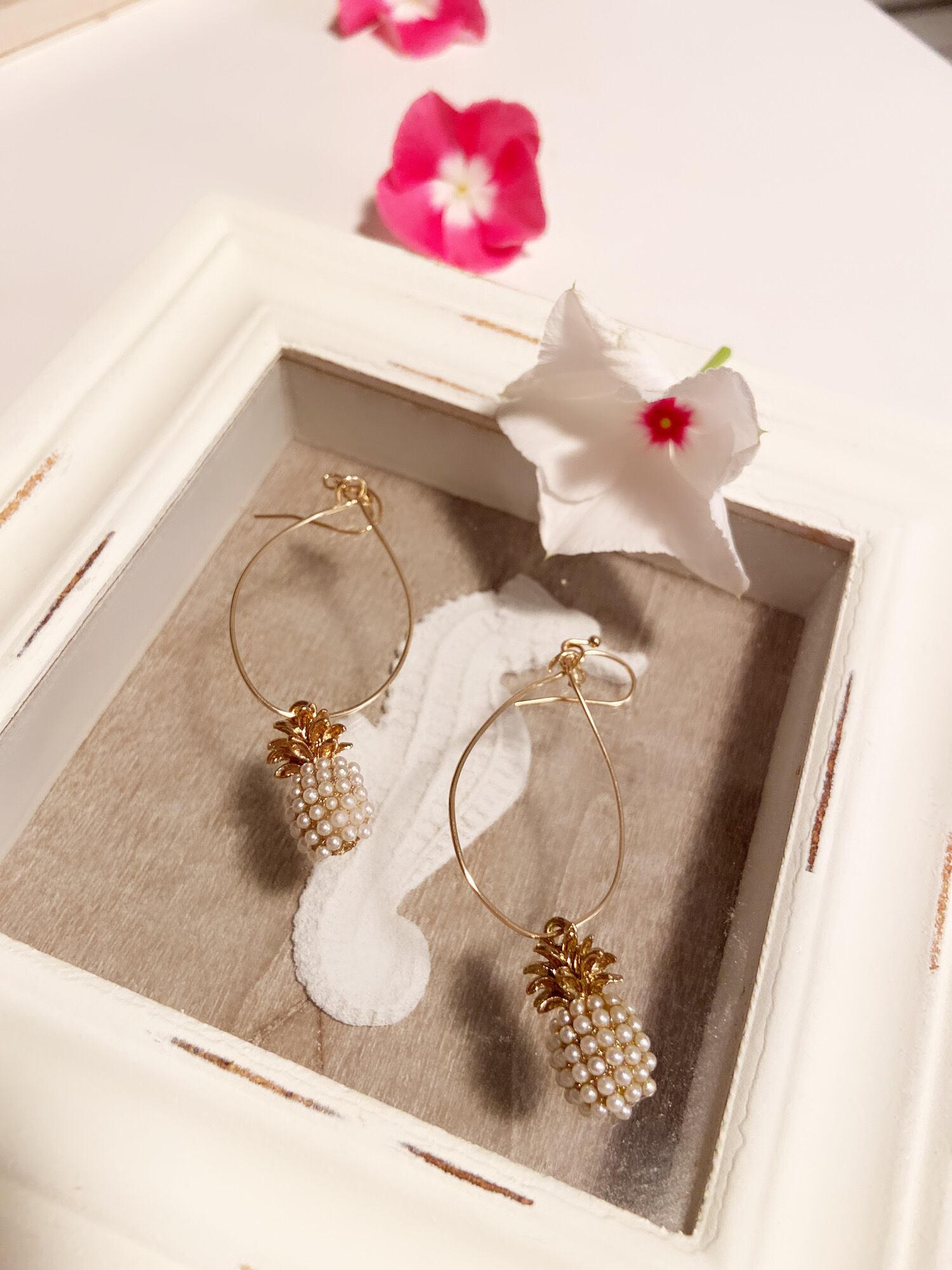 ぷくぷくしたパイナップルを使ったフープピアス!