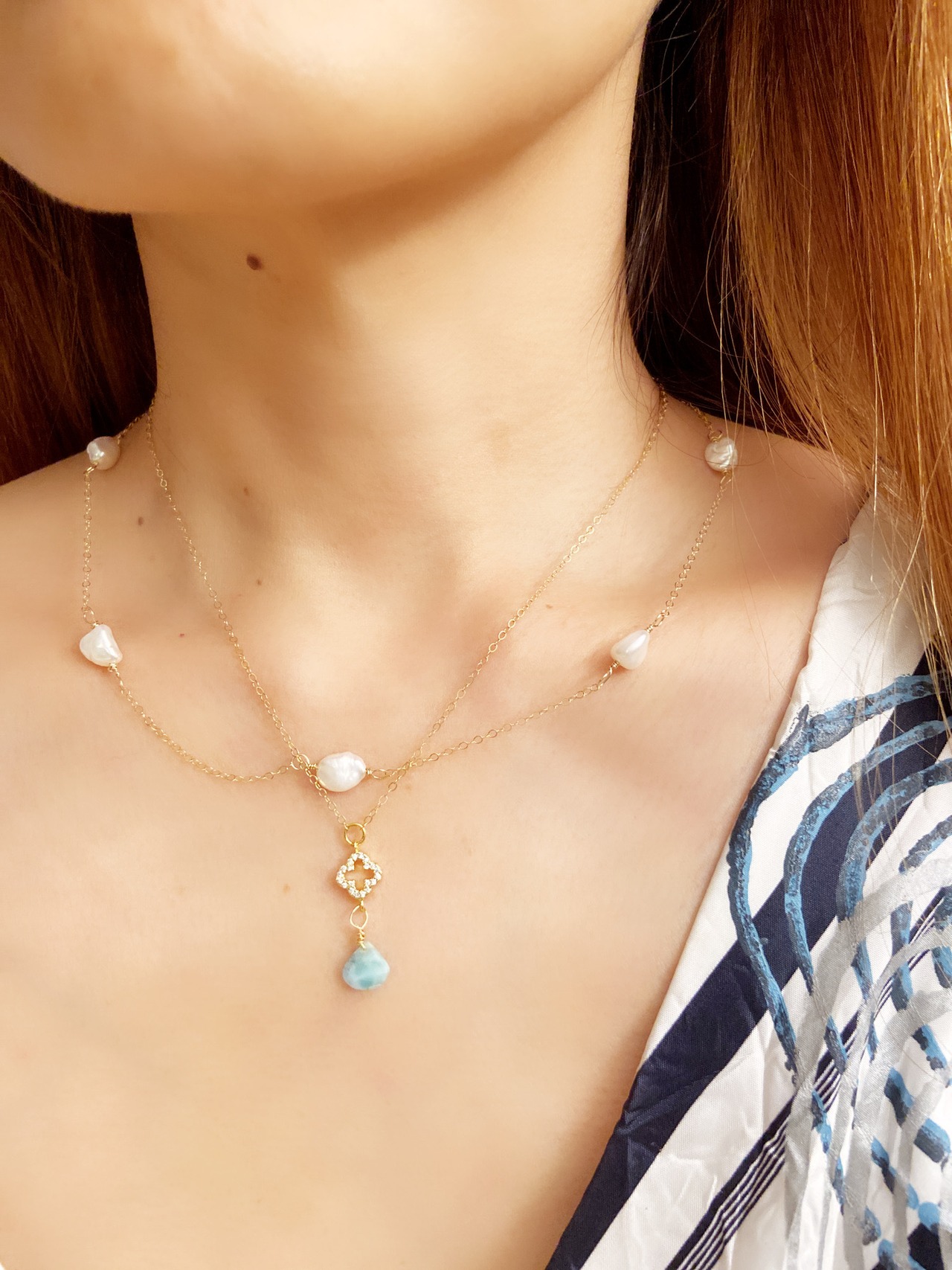ハワイ♡ケシパール チェーン ネックレス ハワイ限定 ハンドメイド ハワイアンジュエリー