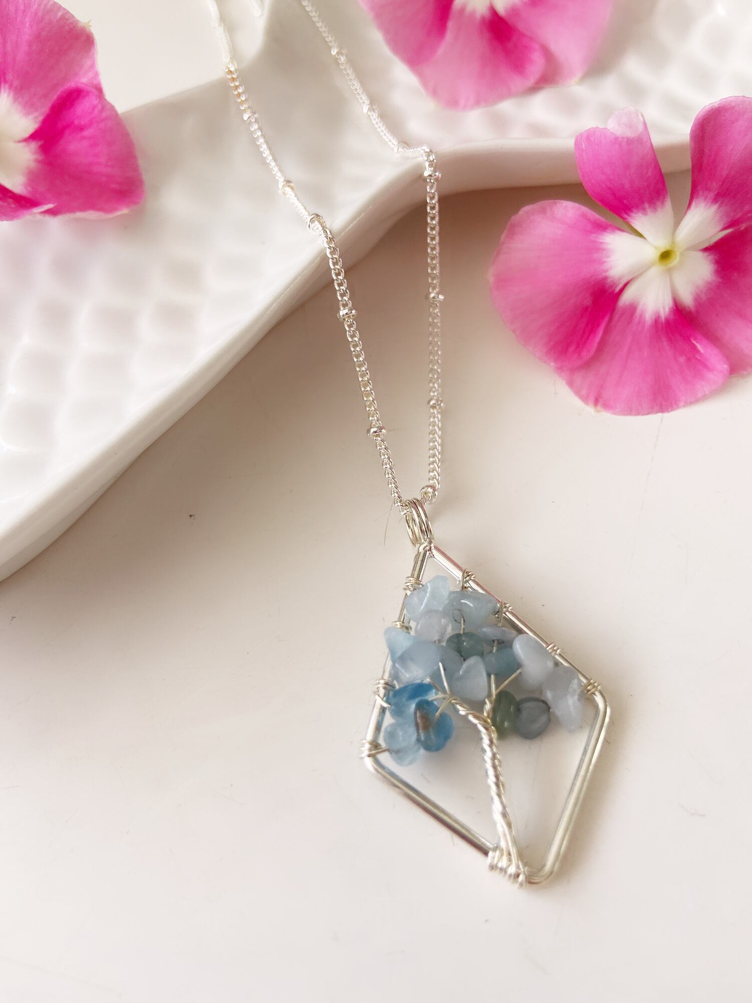 ハワイ♡アクアマリン トゥリー ネックレス シルバー ハワイ限定 天然石