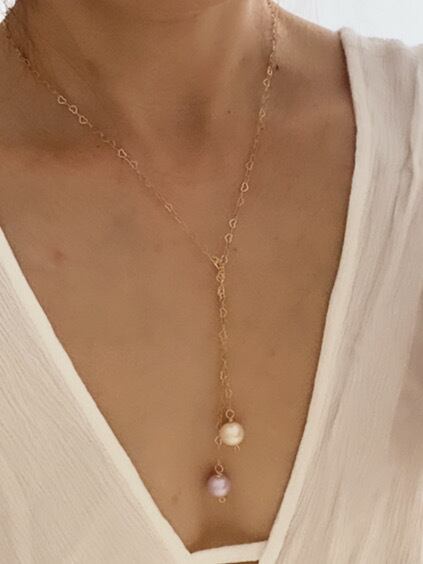 フレッシュパールふた粒 ラリエット ハワイ限定 ゴールド ハワイ 14k ゴールドフィルド