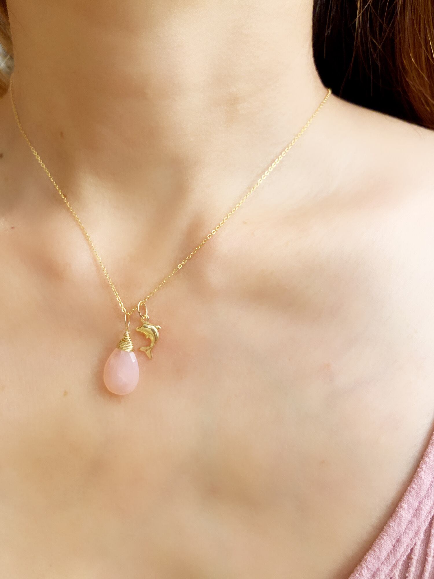 ピンク カルセドニー ドルフィン ネックレス ハワイ ハワイ限定 14k ゴールドフィルド