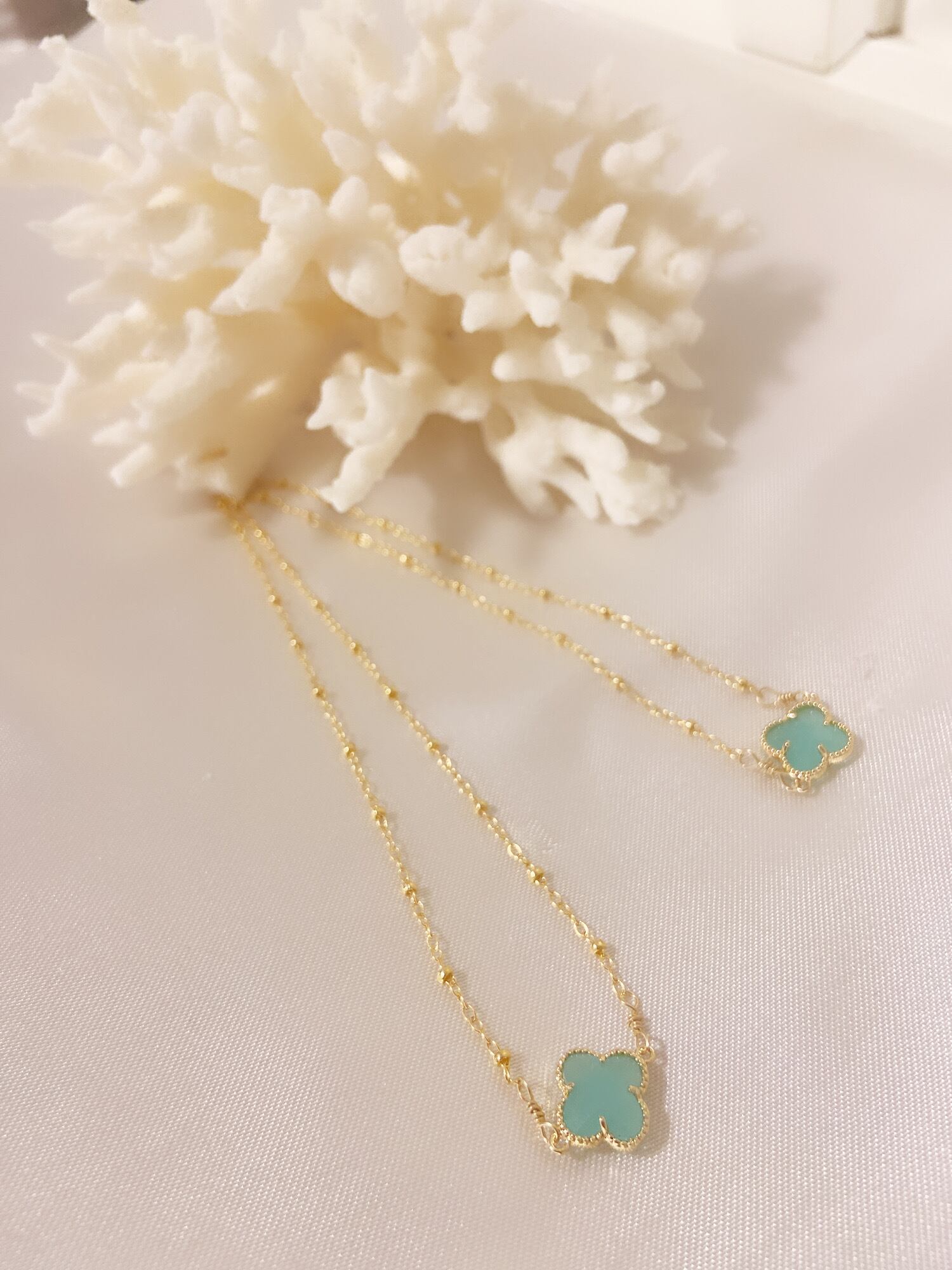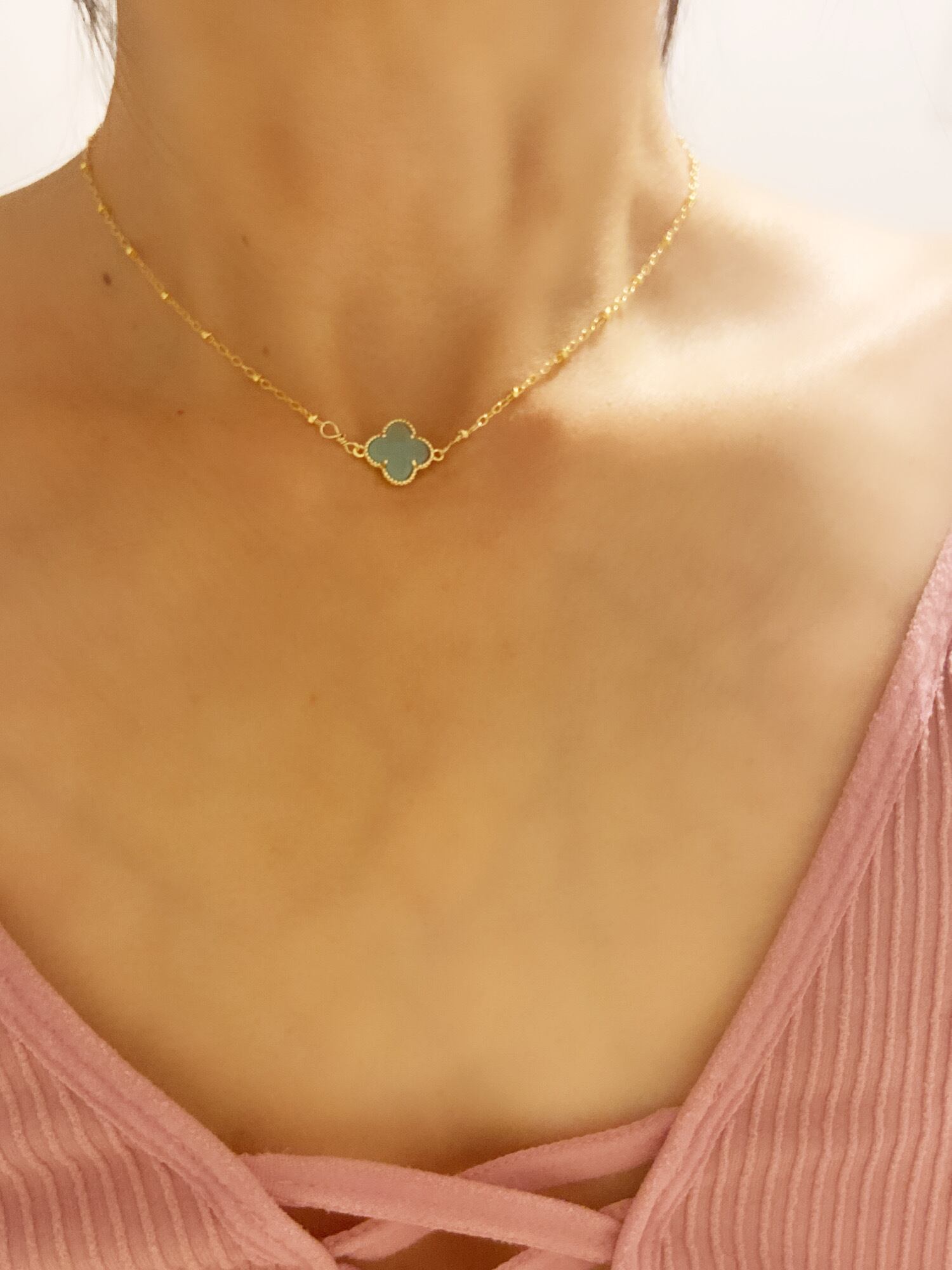 ハワイ♡グリーン ジェイド ヒスイ クローバー ネックレス 14金 ゴールドフィルド