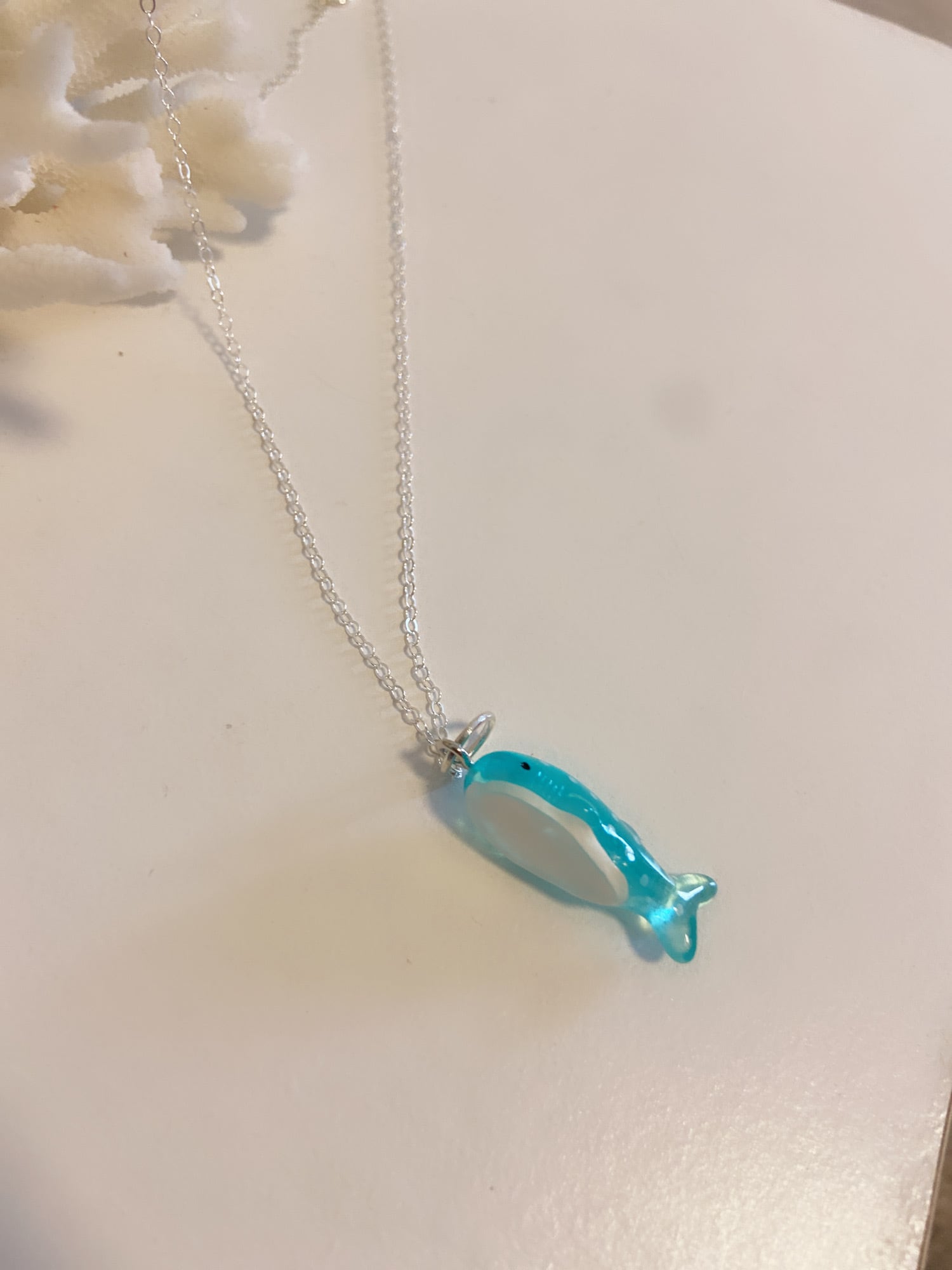 This is a cute shark necklace.