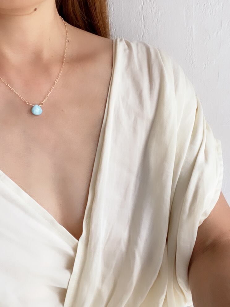 ハワイ♡ラリマー ドロップスタイル ネックレス 天然石 14k ゴールド フィルド