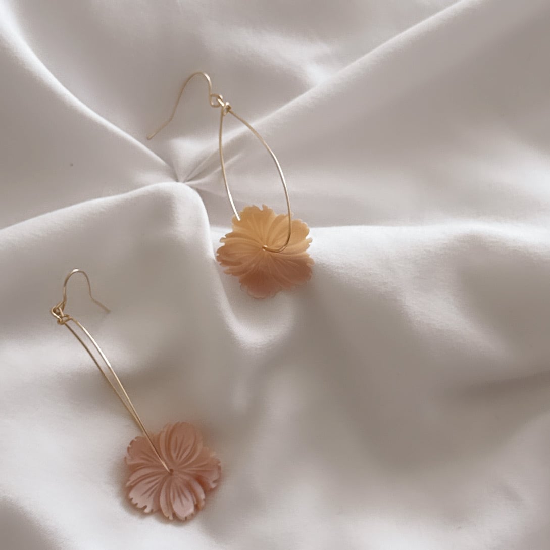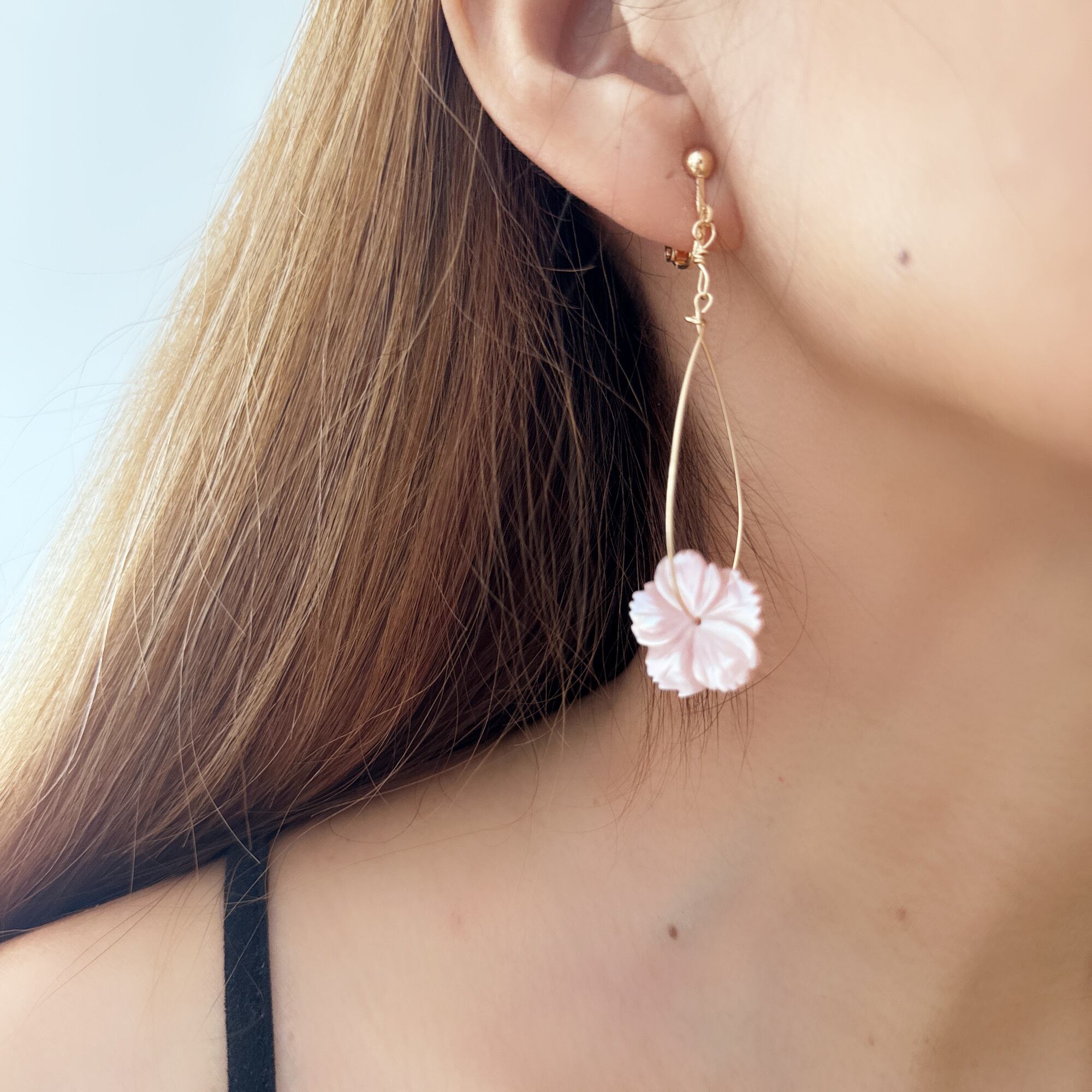 ハワイ♡ピンク シェル フラワー ピアス マザーオブパール