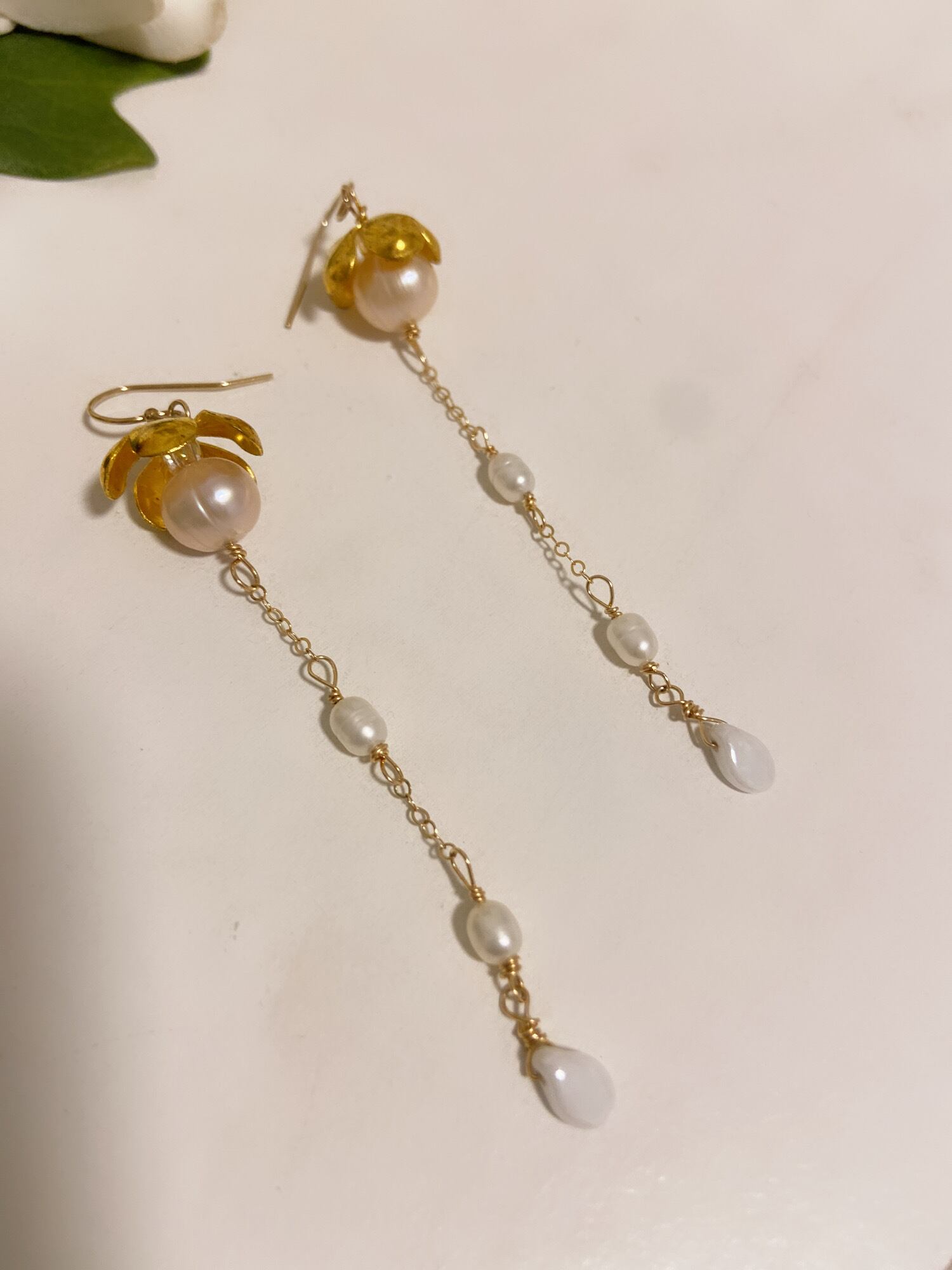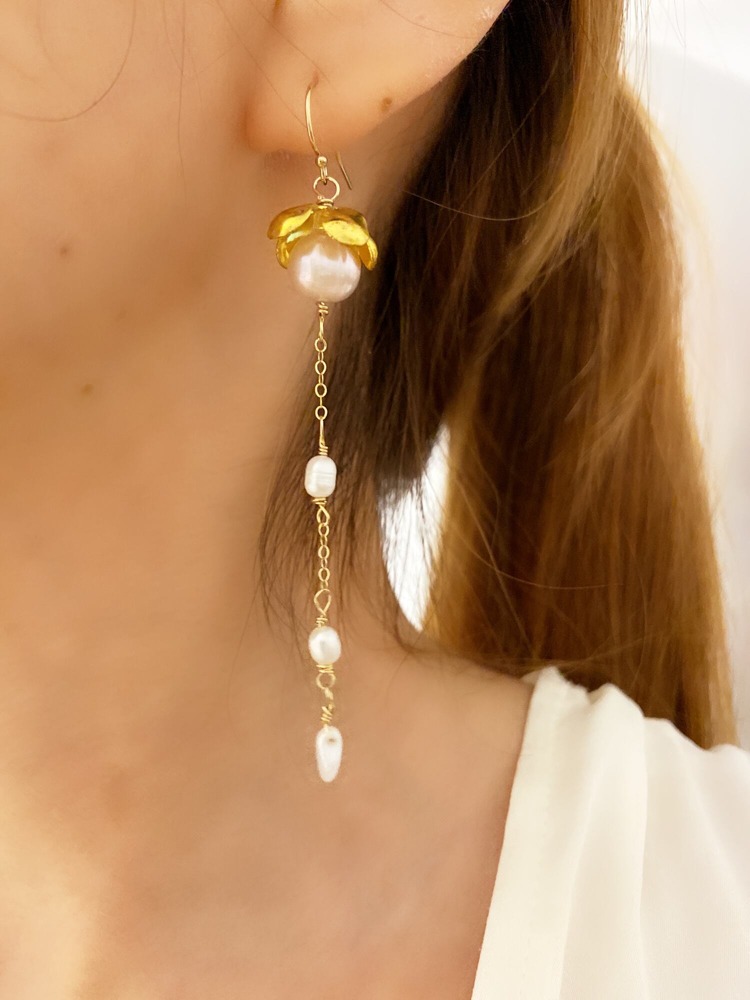 美しいフレッシュウォーターパールを使ったフラワーピアス。